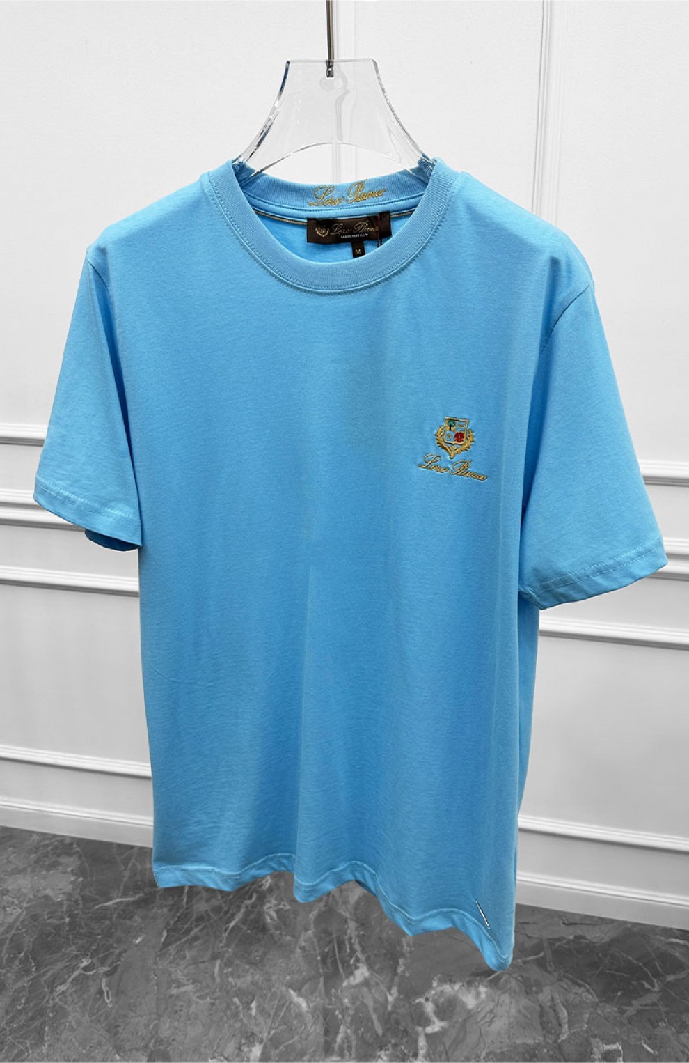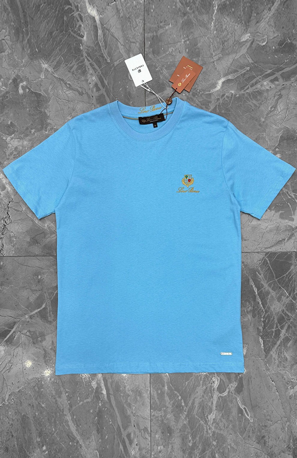 Футболка голубого цвета Loro Piana logo-embroidered