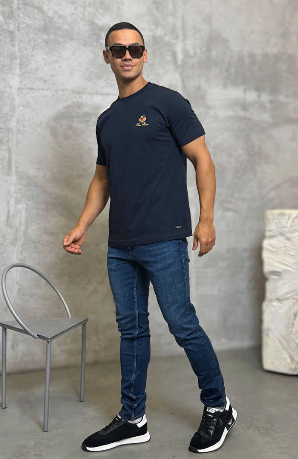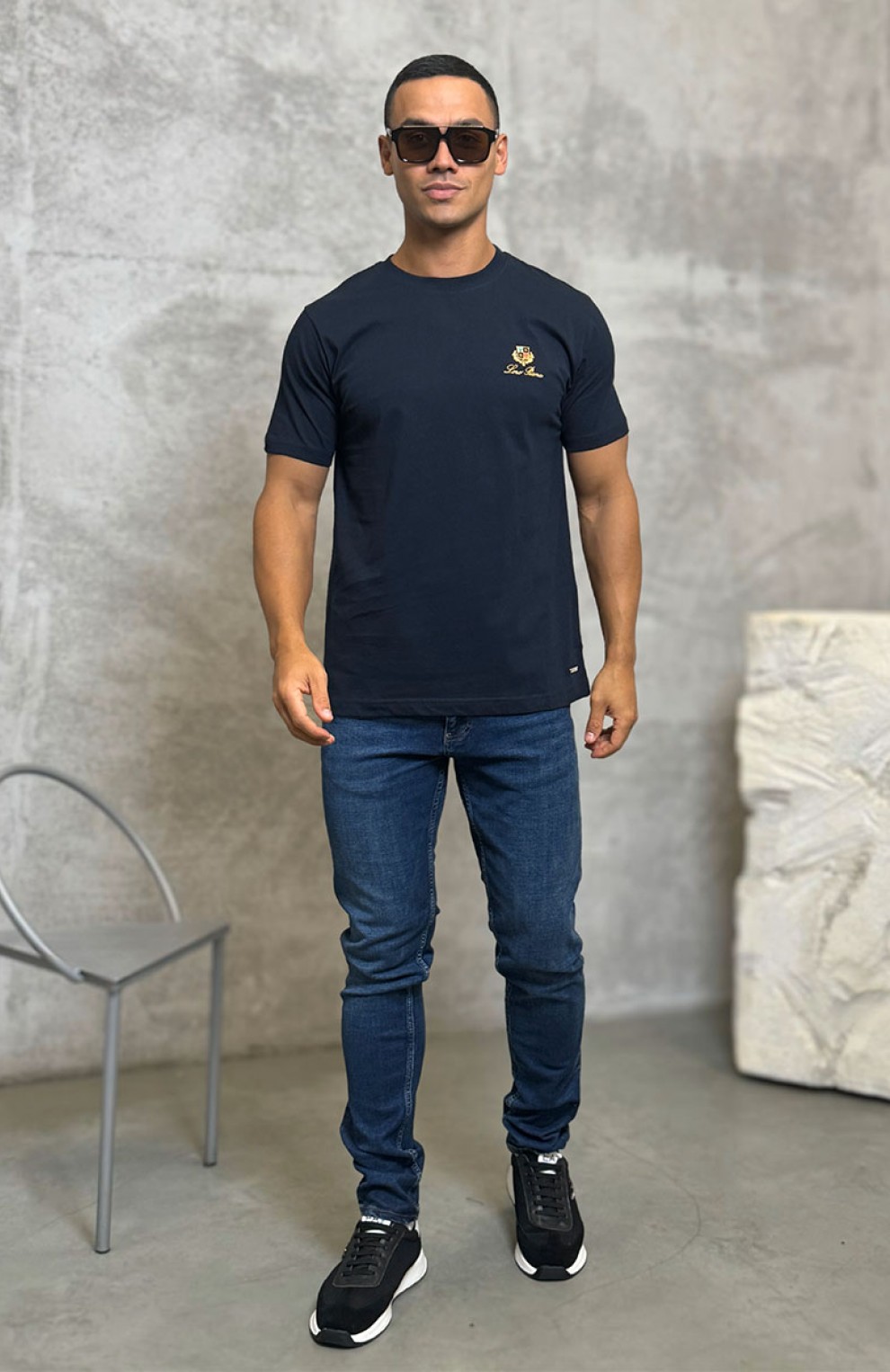 Футболка синего цвета Loro Piana logo-embroidered