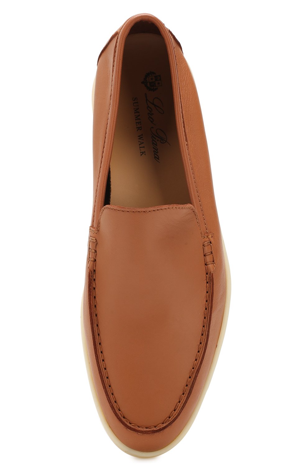 Лоферы Summer Walk табачного цвета вошли в классическую коллекцию. Мастера марки, основанной Пьетро Лоро Пьяна, изготовили модель из фактурной кожи ягненка с матовым блеском. Цельная светлая подошва выполнена из мягкого гибкого каучука. Такая обувь станет идеальным завершением повседневного образа.