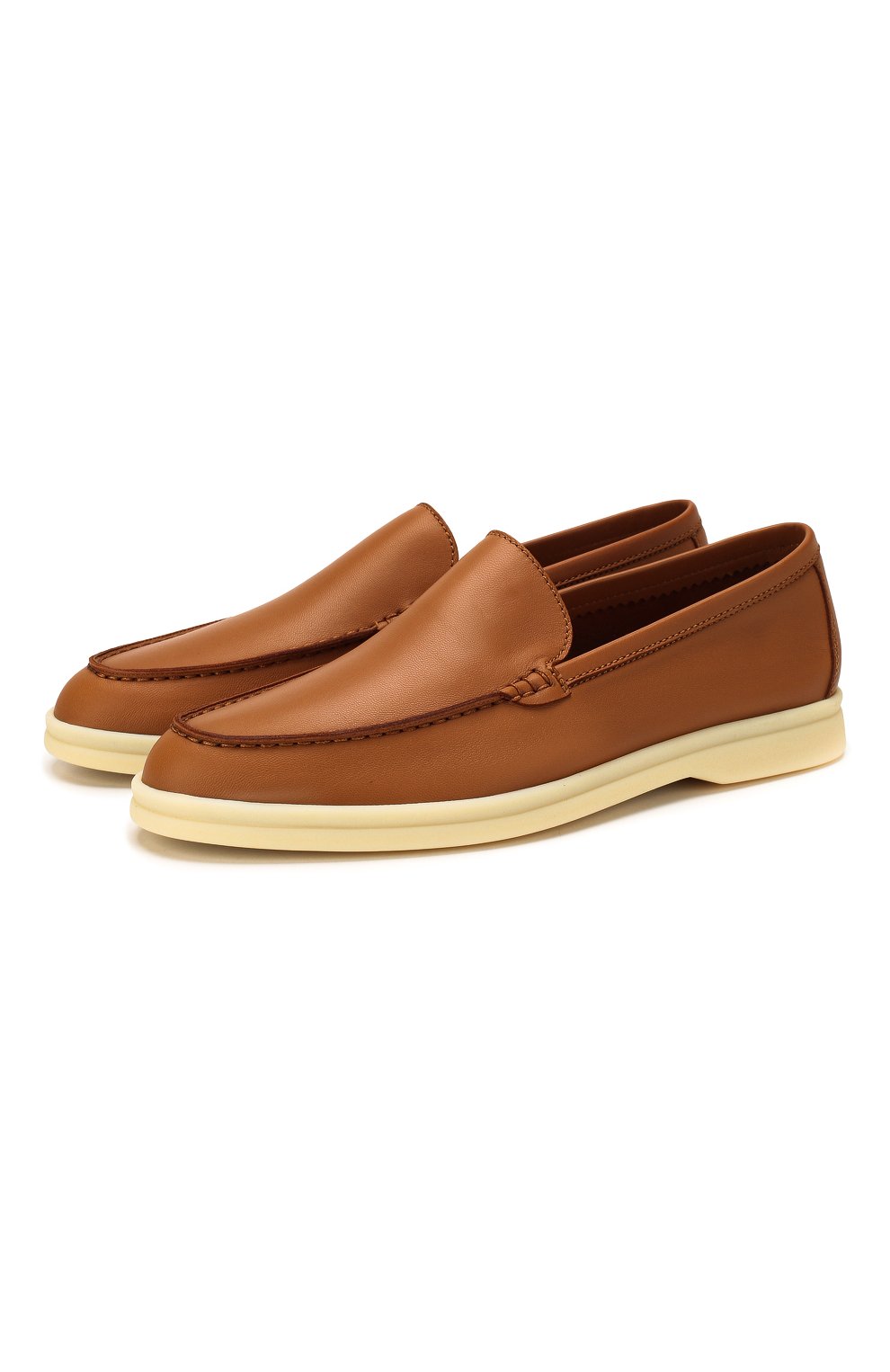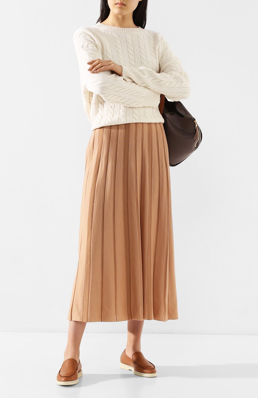 В лоферах Summer Walk цвета арахисовой пасты будет комфортно в течение всего дня. Модель из тонкой мягкой кожи практически полностью сшили вручную, поэтому изделие идеально садится по ноге. В сочетании с длинной юбкой пара из весенне-летней коллекции бренда, основанного Пьетро Лоро Пьяна, станет доказательством того, что женственно можно выглядеть в обуви без каблука.