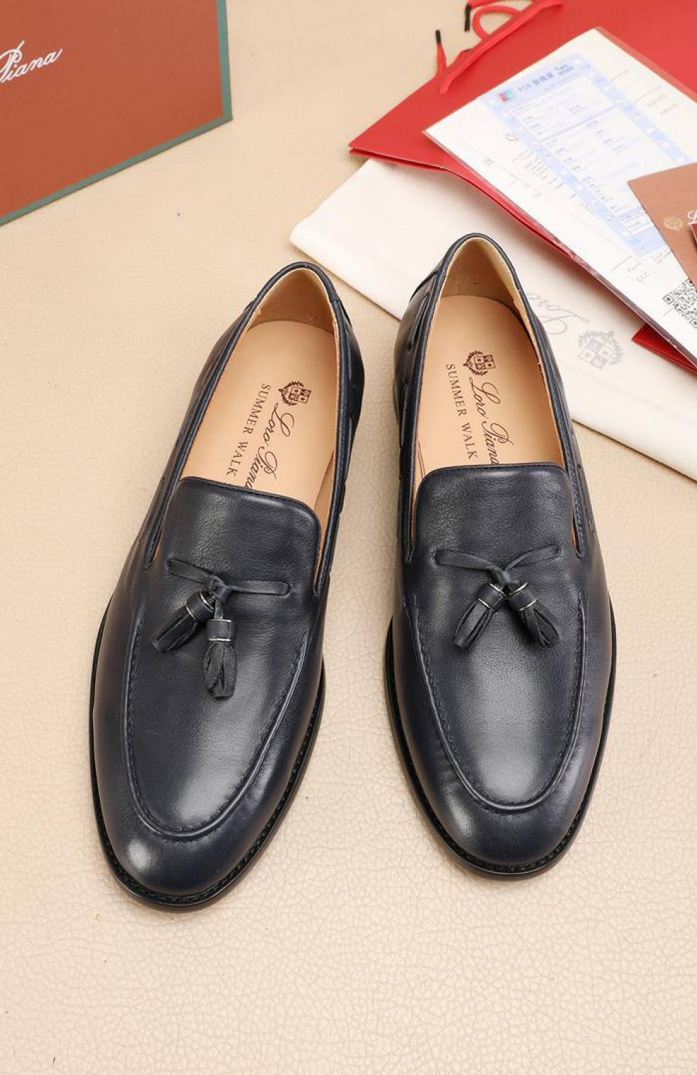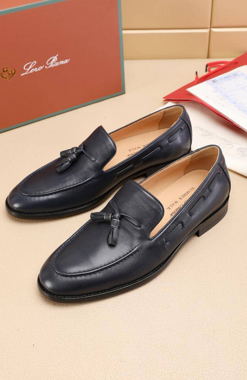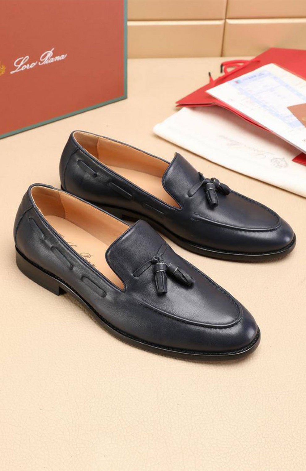Кожаные лоферы Loro Piana tassel - Navy