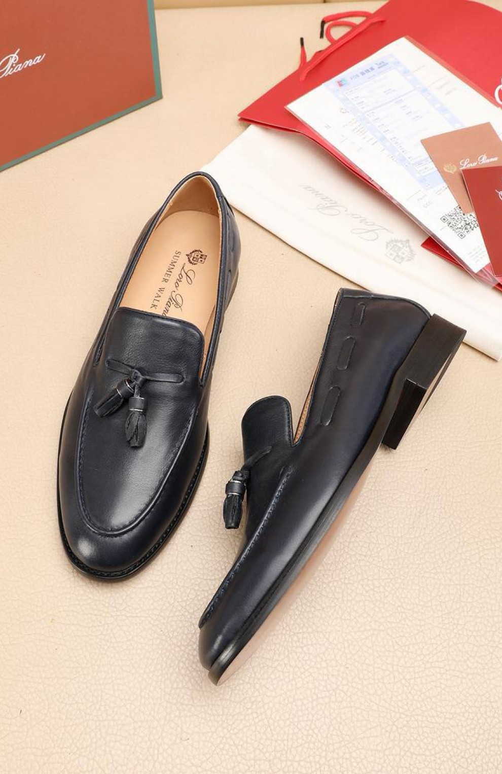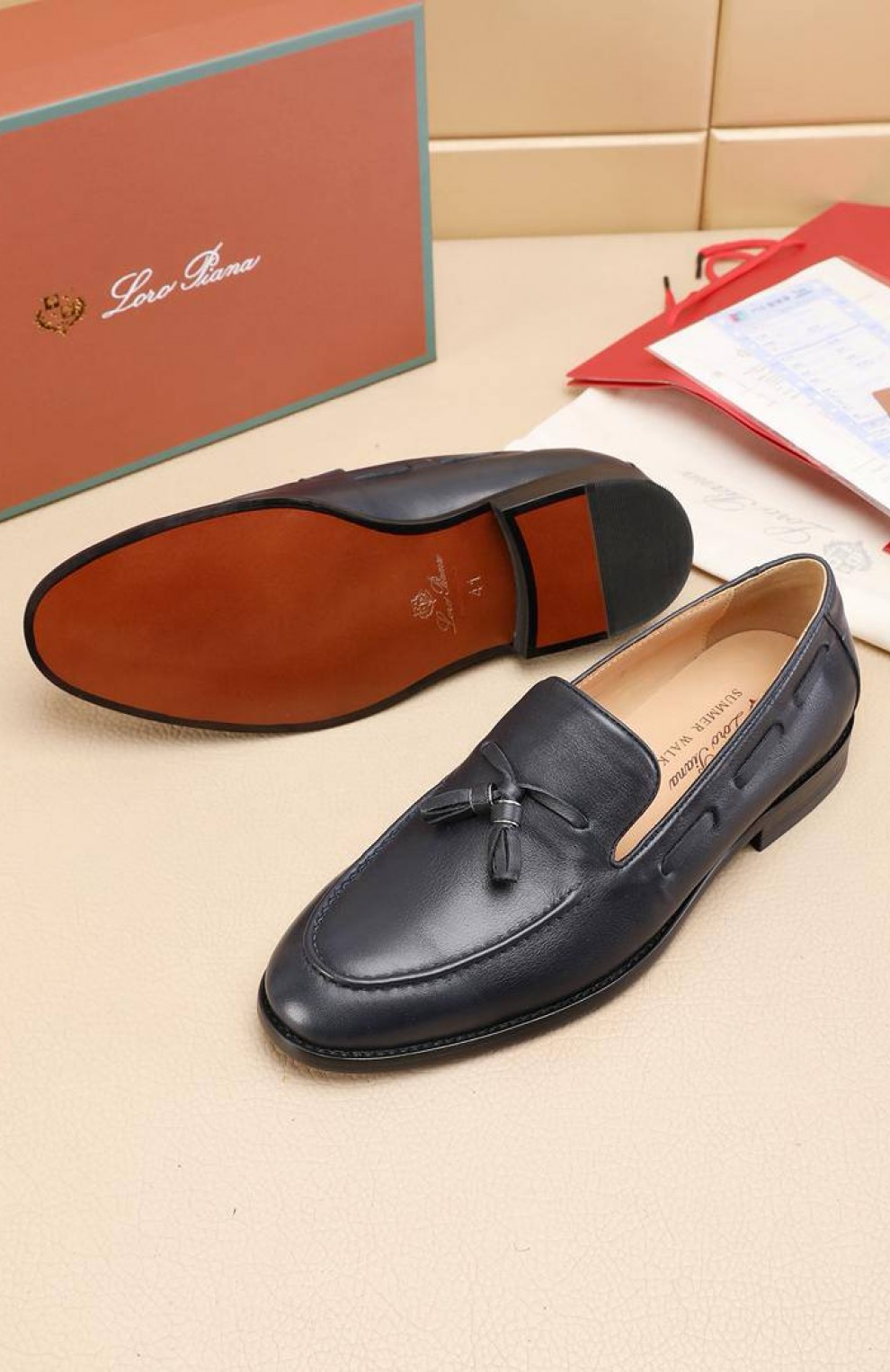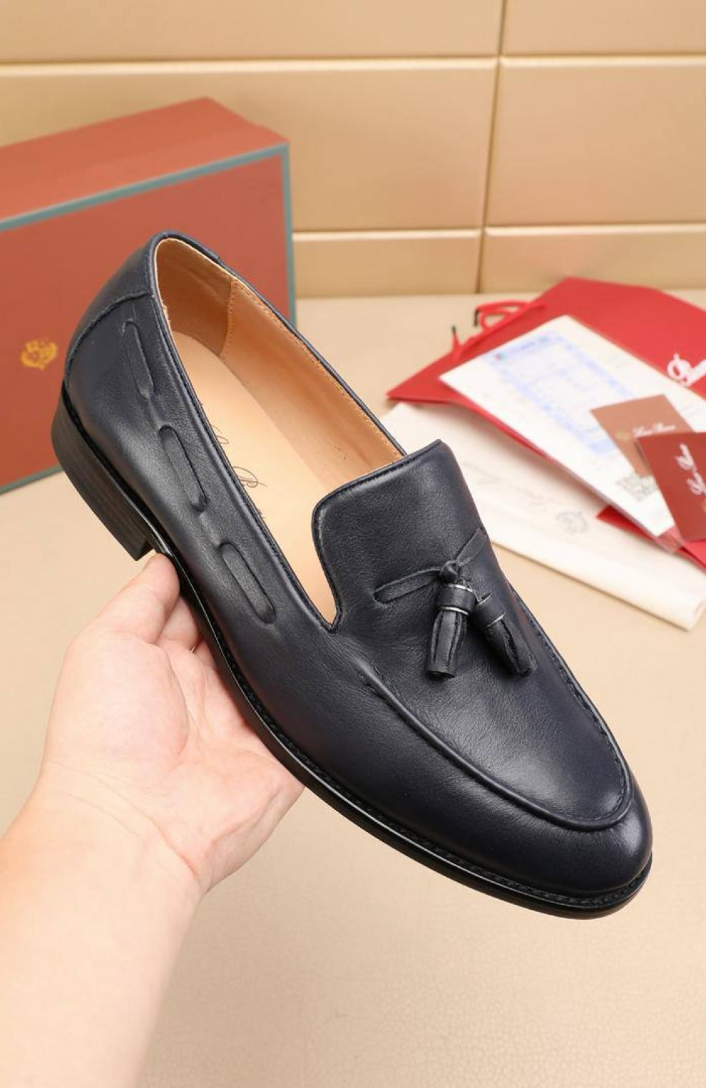 Кожаные лоферы Loro Piana tassel - Navy