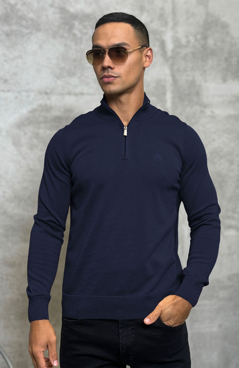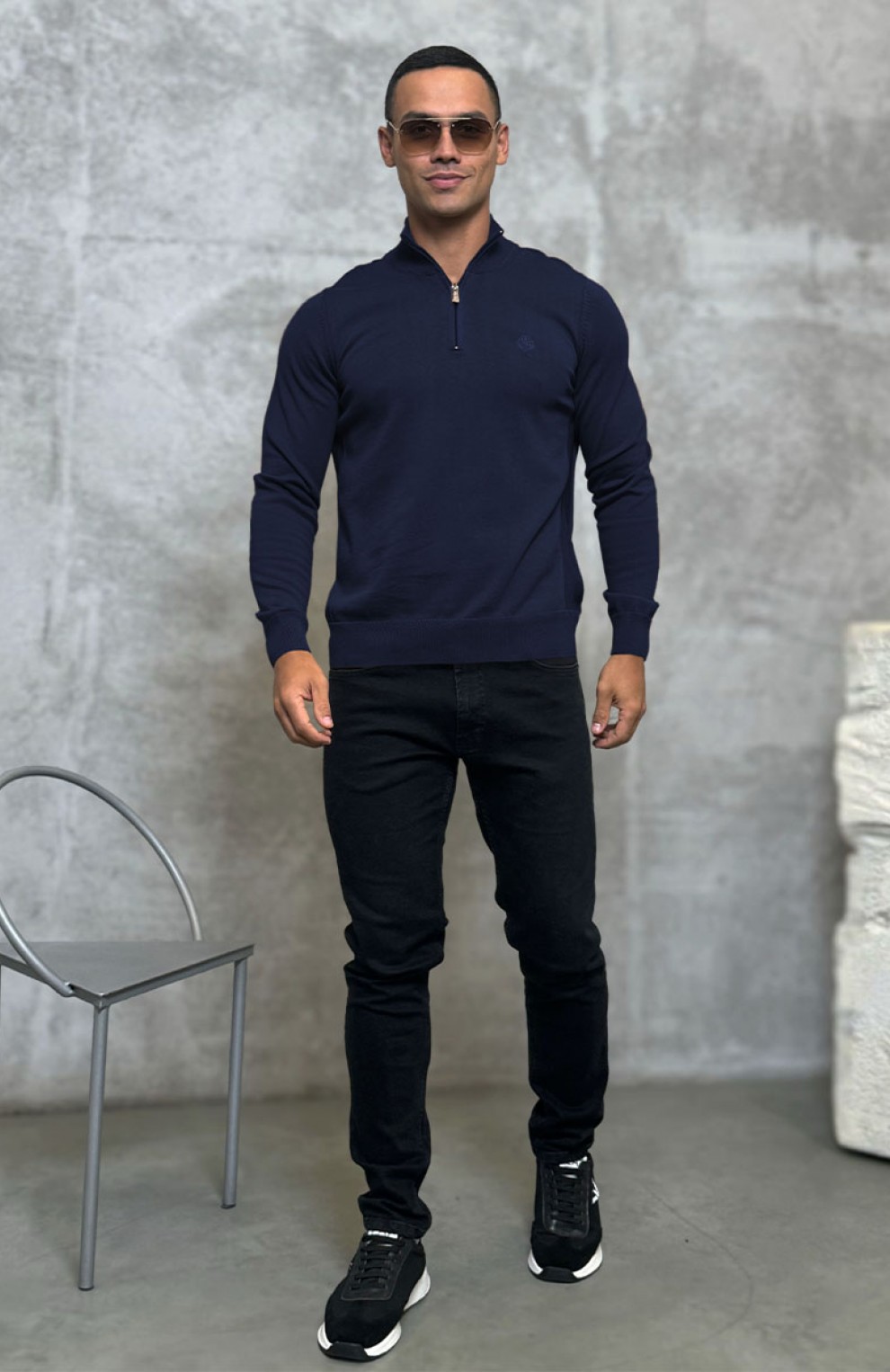 Мужская кофта Loro Piana zip neck - Navy