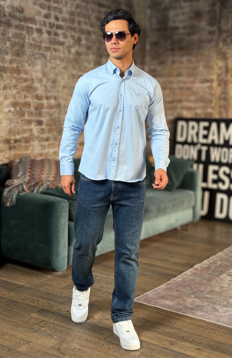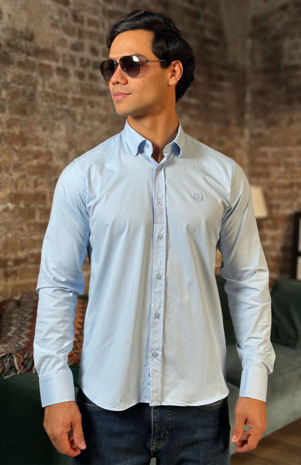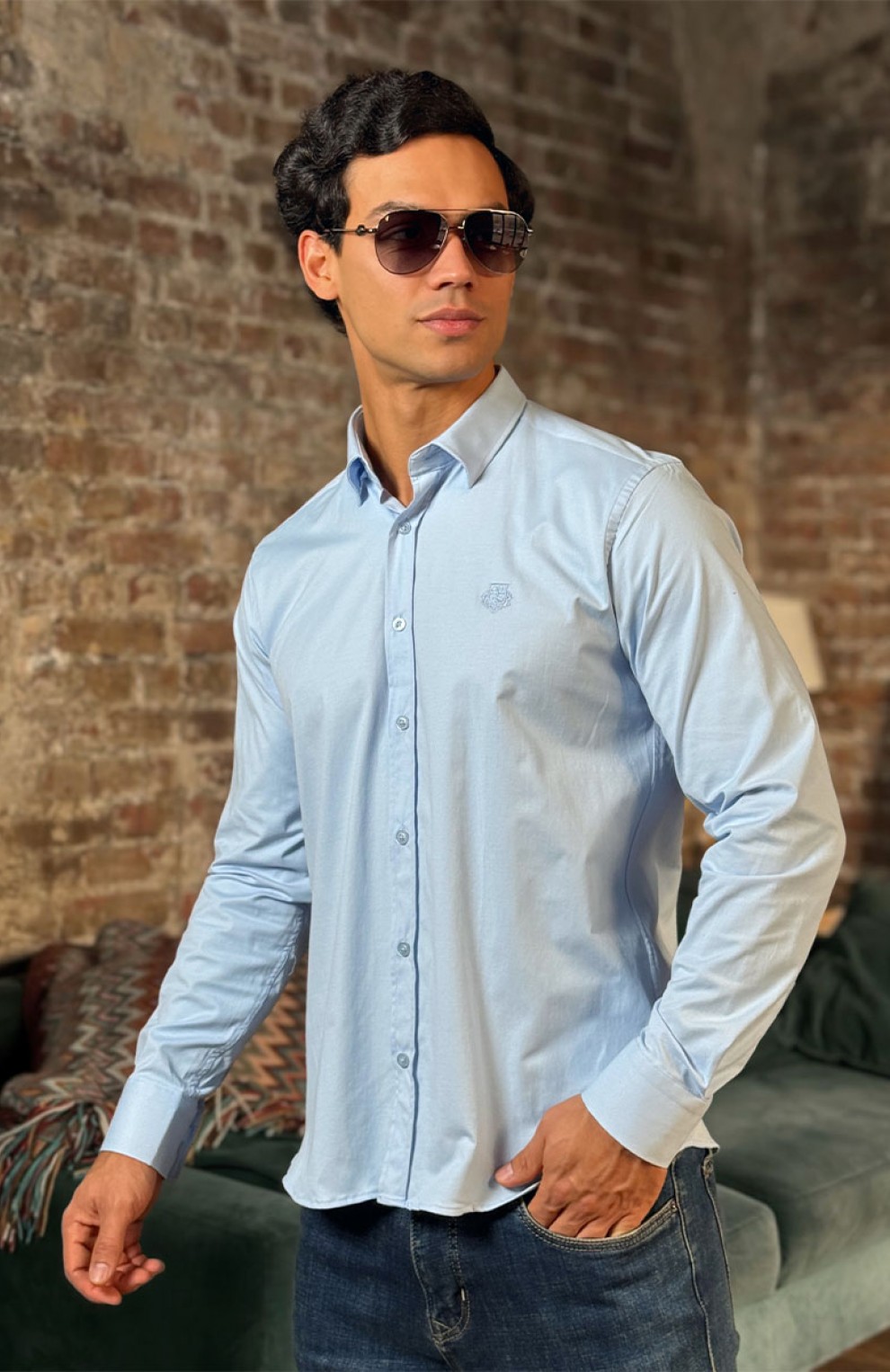 Мужская рубашка Loro Piana голубого цвета