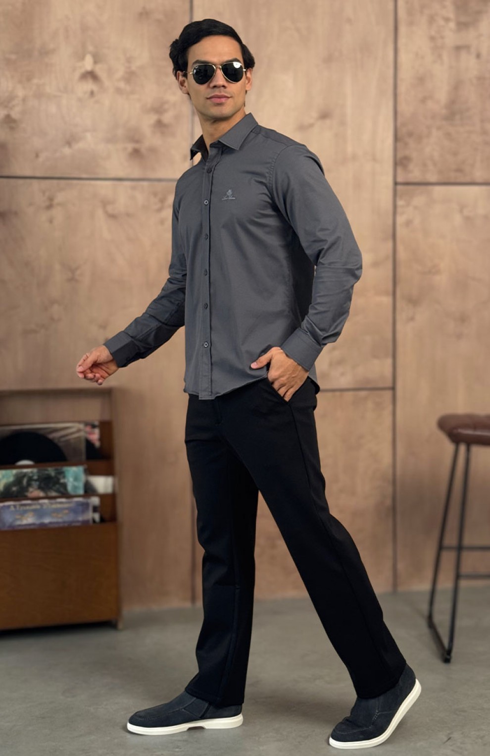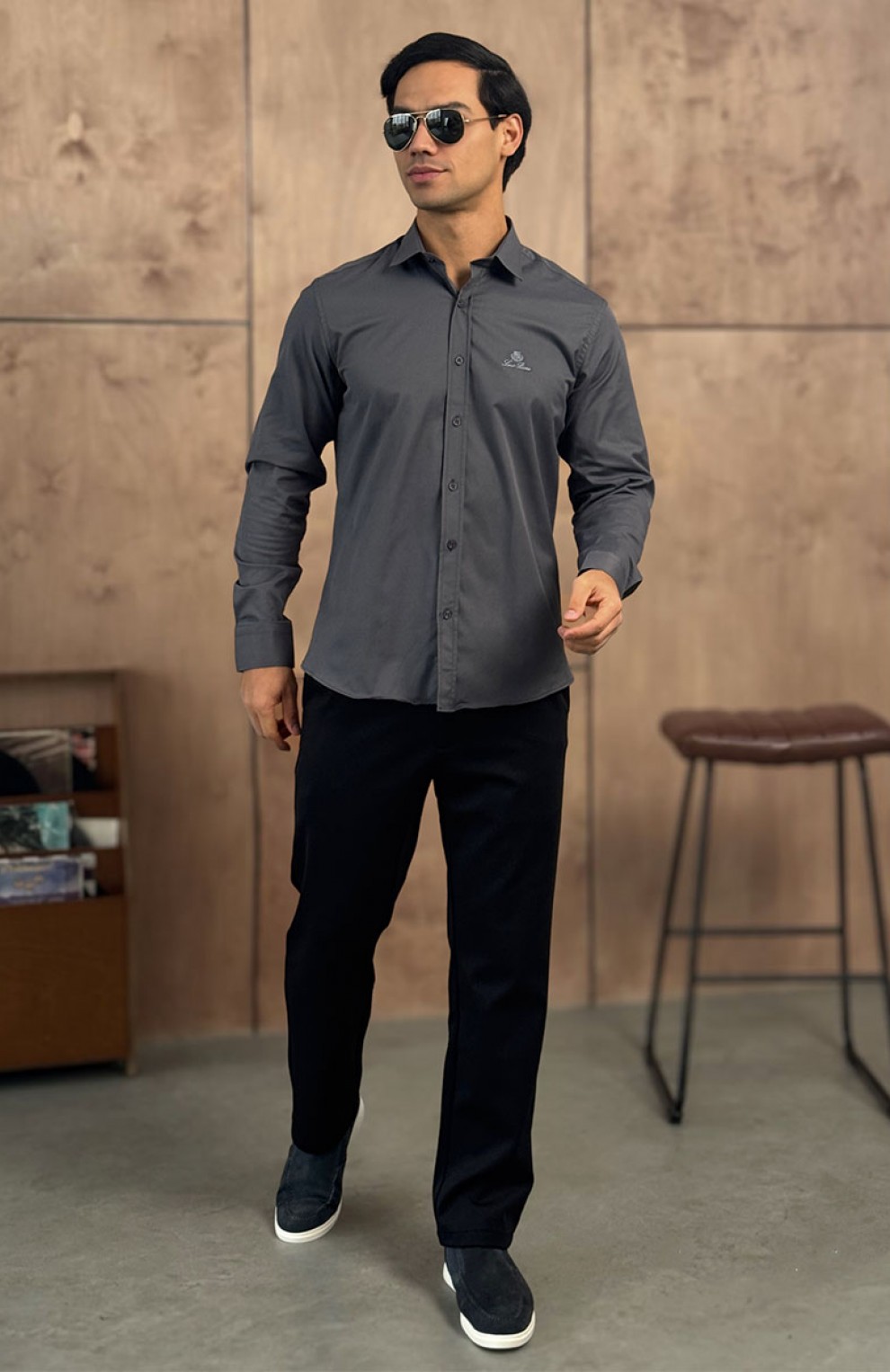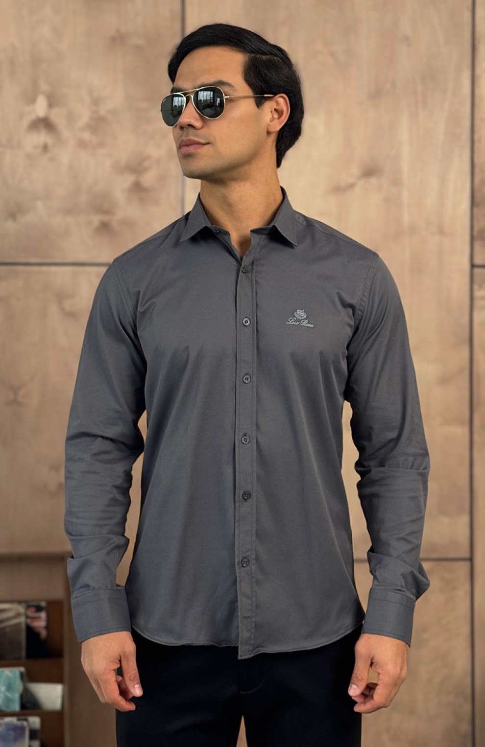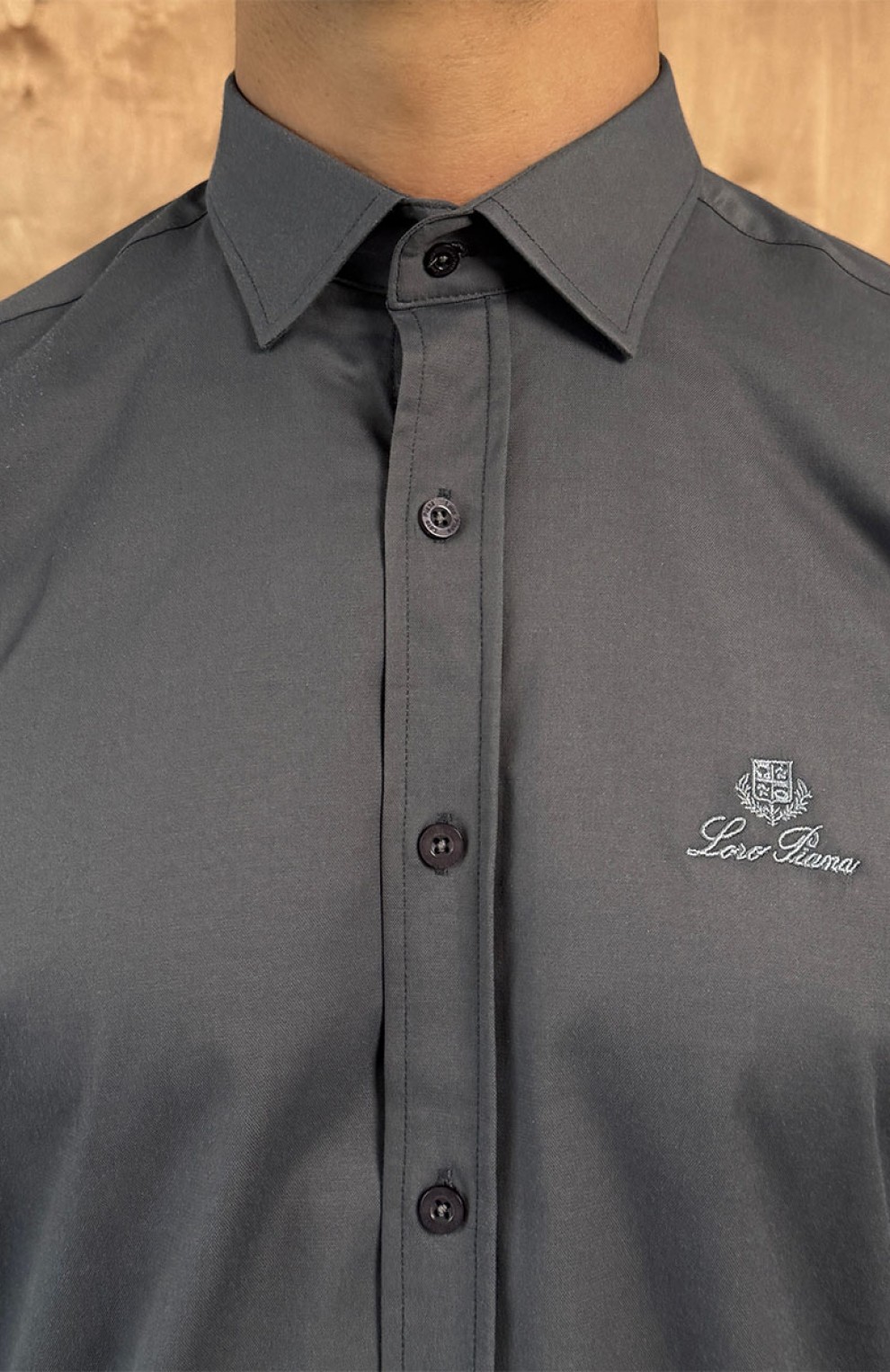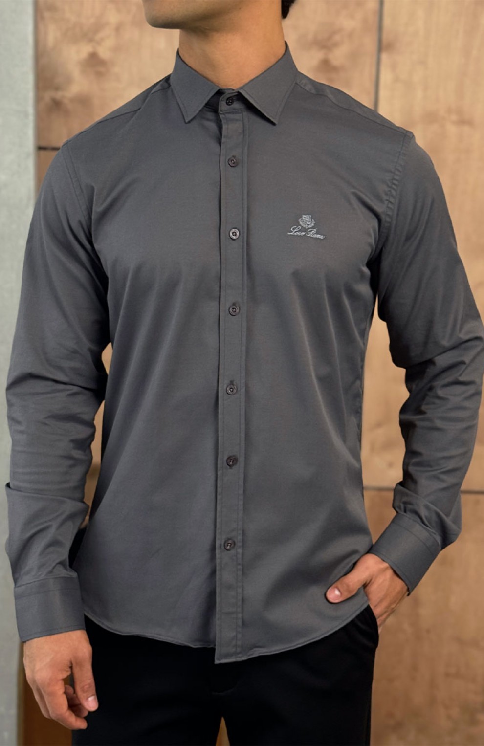 Мужская серая рубашка Loro Piana logo-embroidered