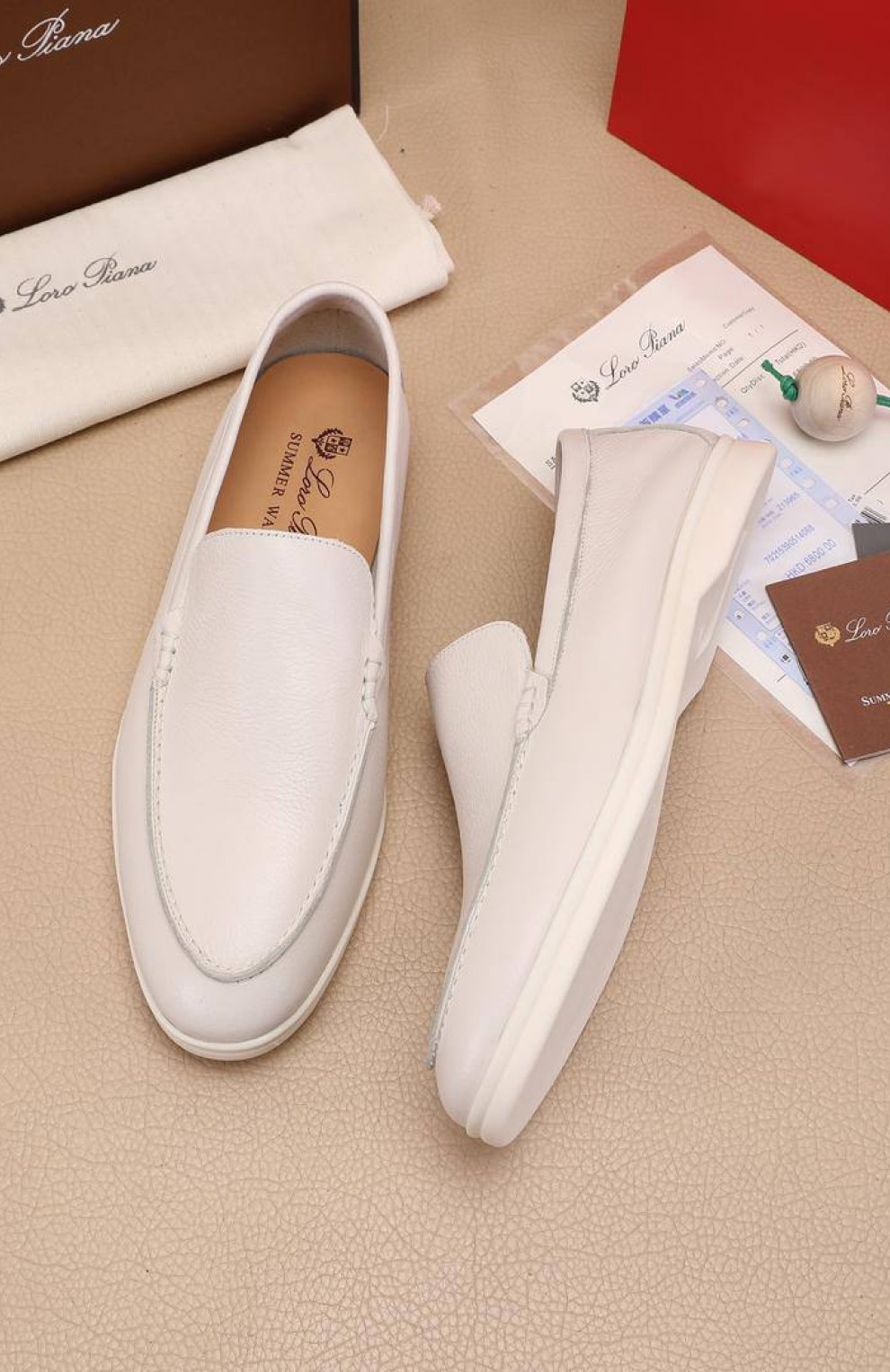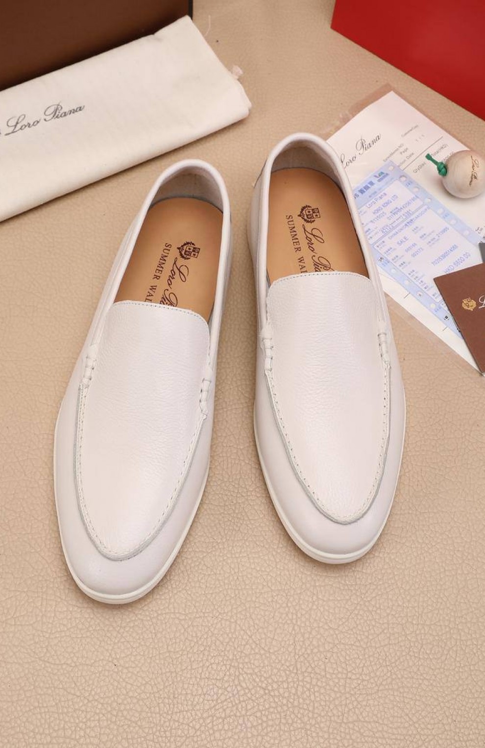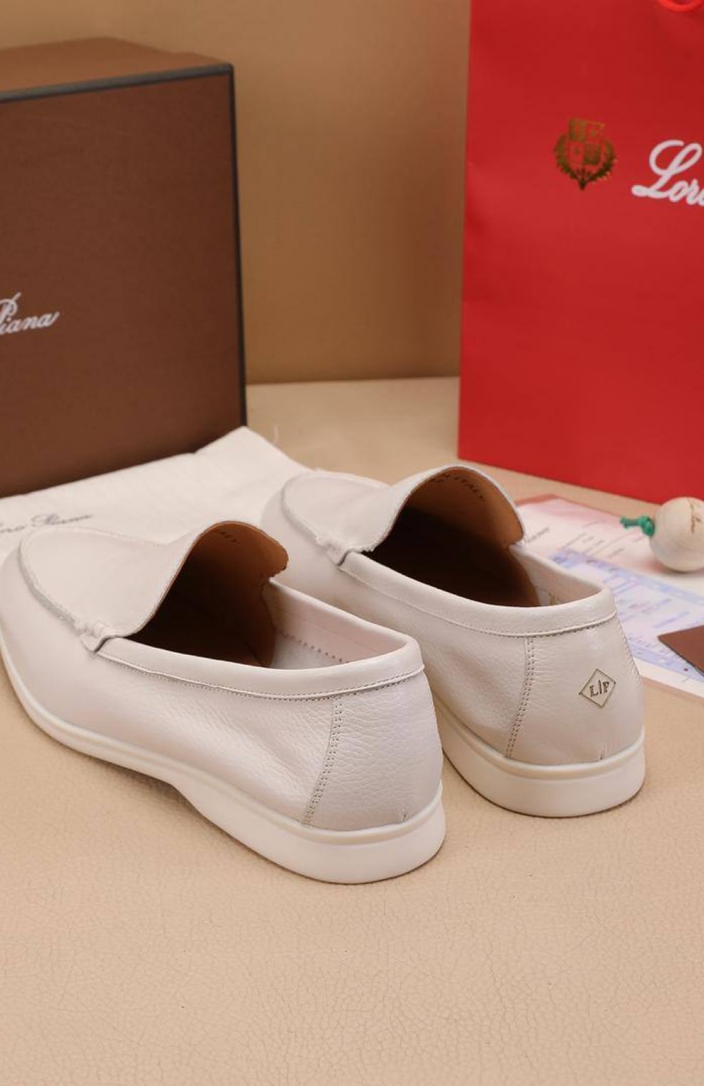 Мужские кожаные лоферы Loro Piana Summer Walk - White