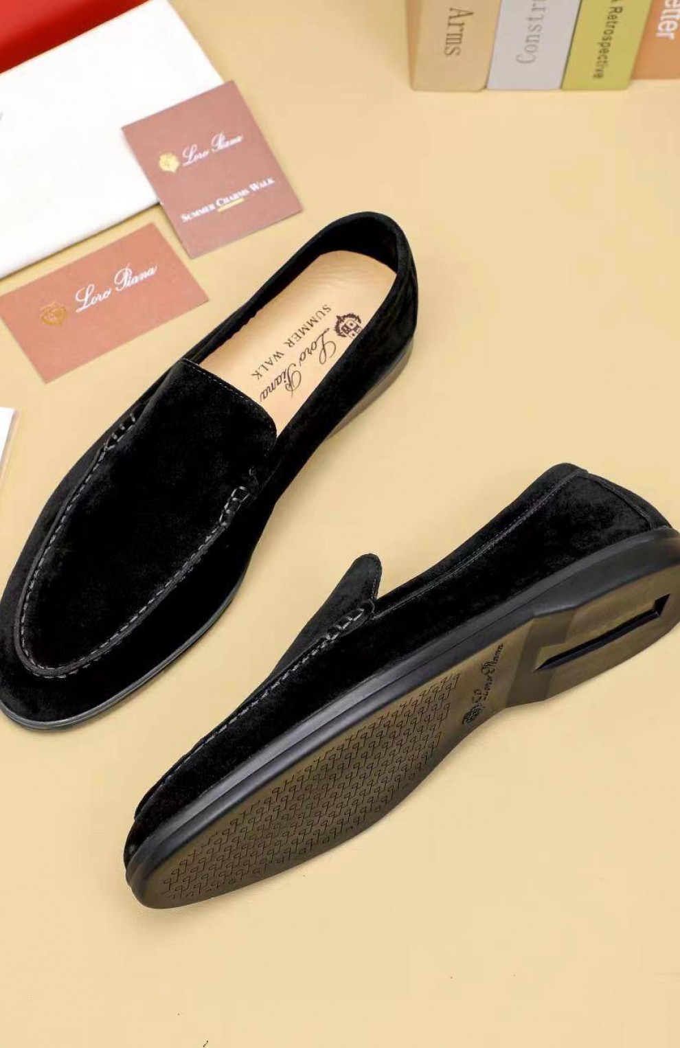 Мужские замшевые лоферы Loro Piana Summer Walk - Black