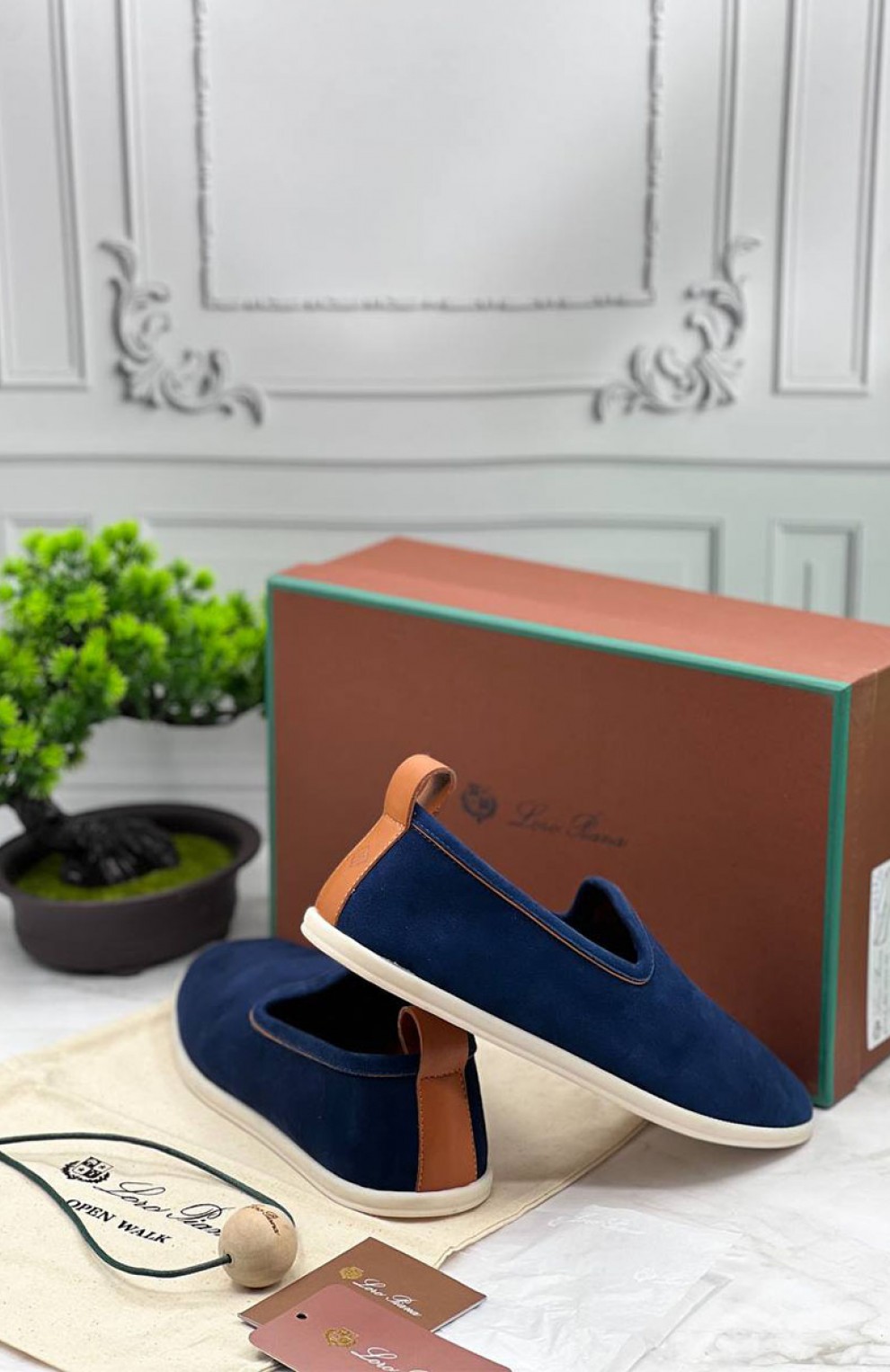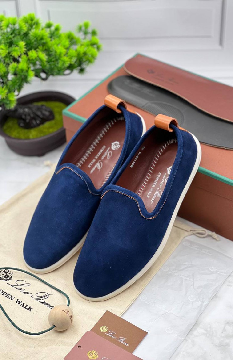 Мужские замшевые лоферы Loro Piana Venice Walk - Blue