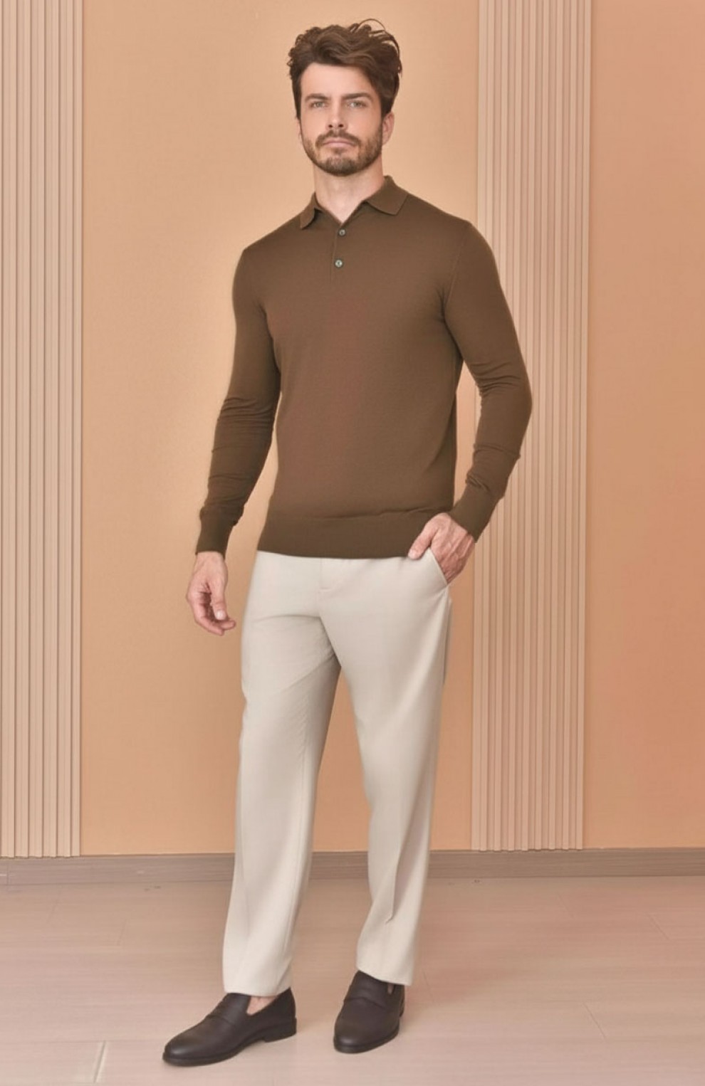 Поло с длинным рукавом Loro Piana Premium - Caramel