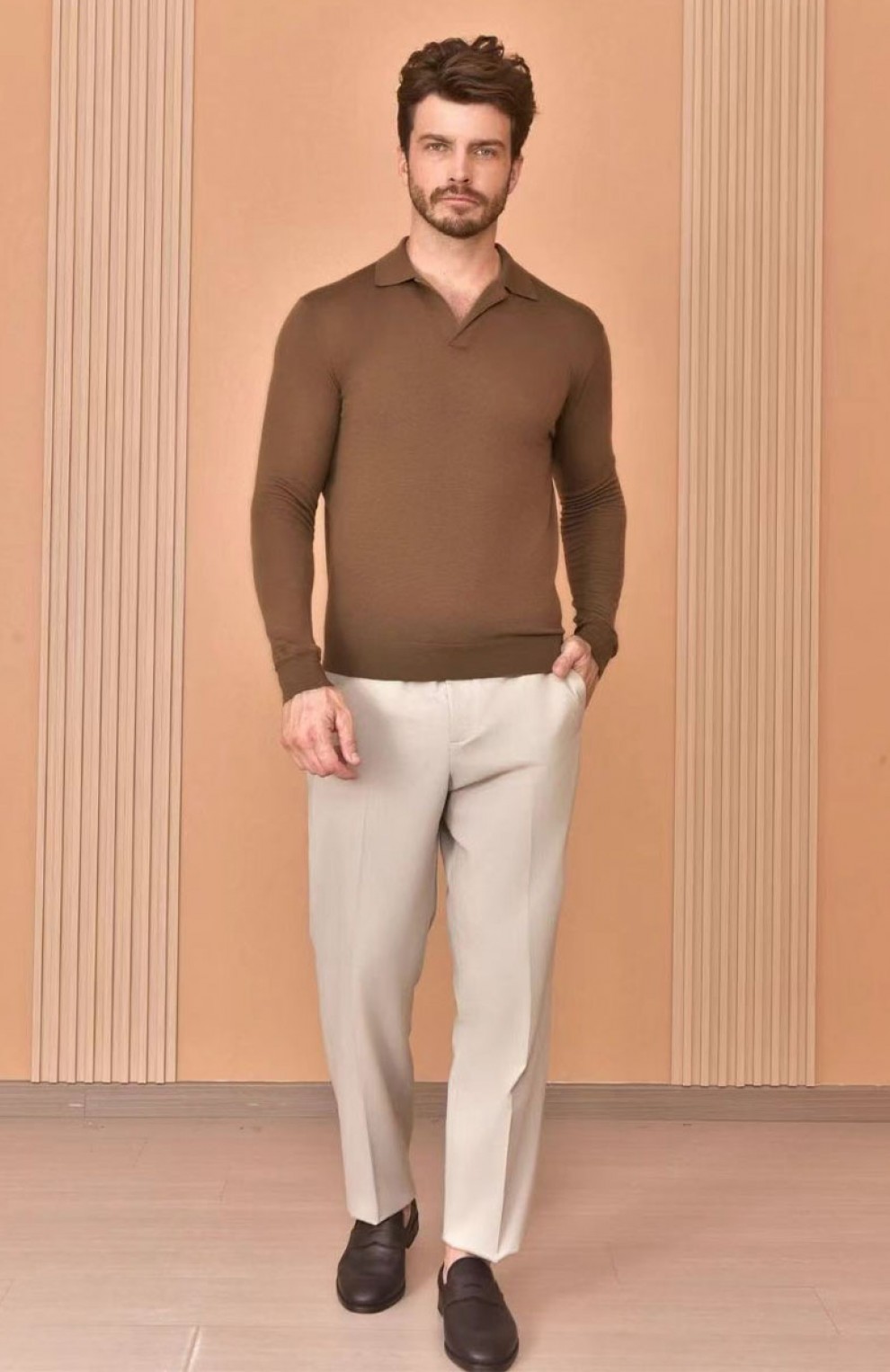 Поло с длинным рукавом Loro Piana Premium - Caramel