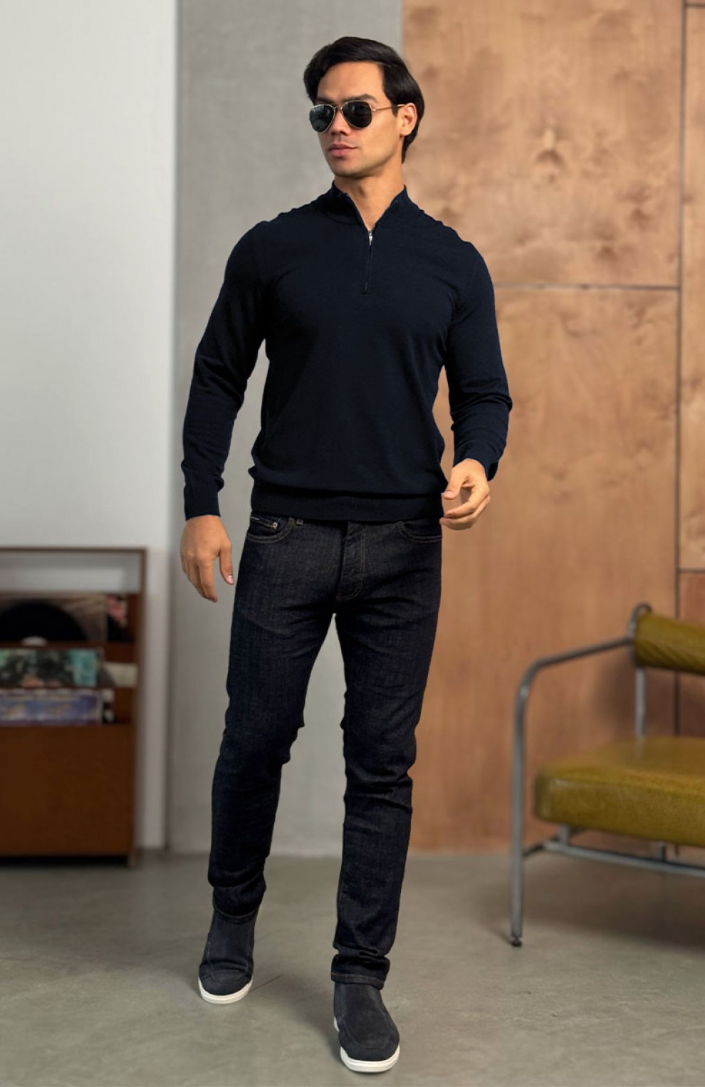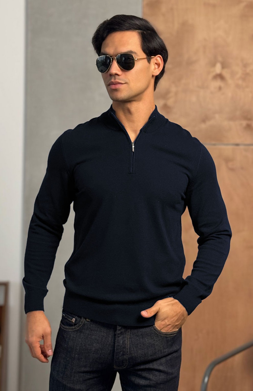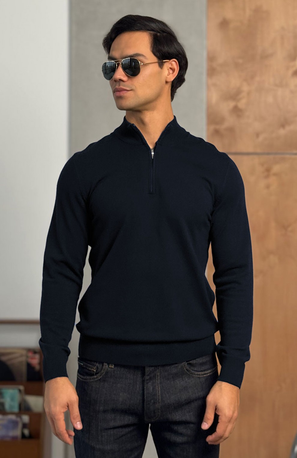 Тёмно-синий джемпер Loro Piana Zip Neck
