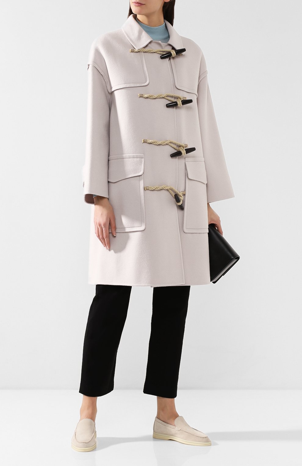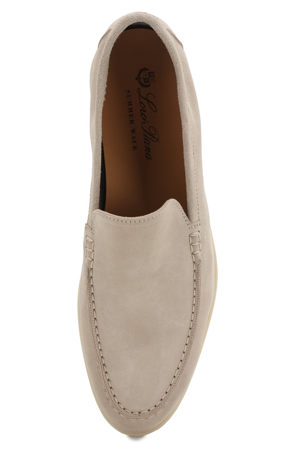 В классическую коллекцию вошли бежевые лоферы Summer Walk на широкой светлой латексной подошве. Мастера марки, основанной Пьетро Лоро Пьяна, использовали для их изготовления мягкую фактурную замшу, пропитанную водоотталкивающим составом.