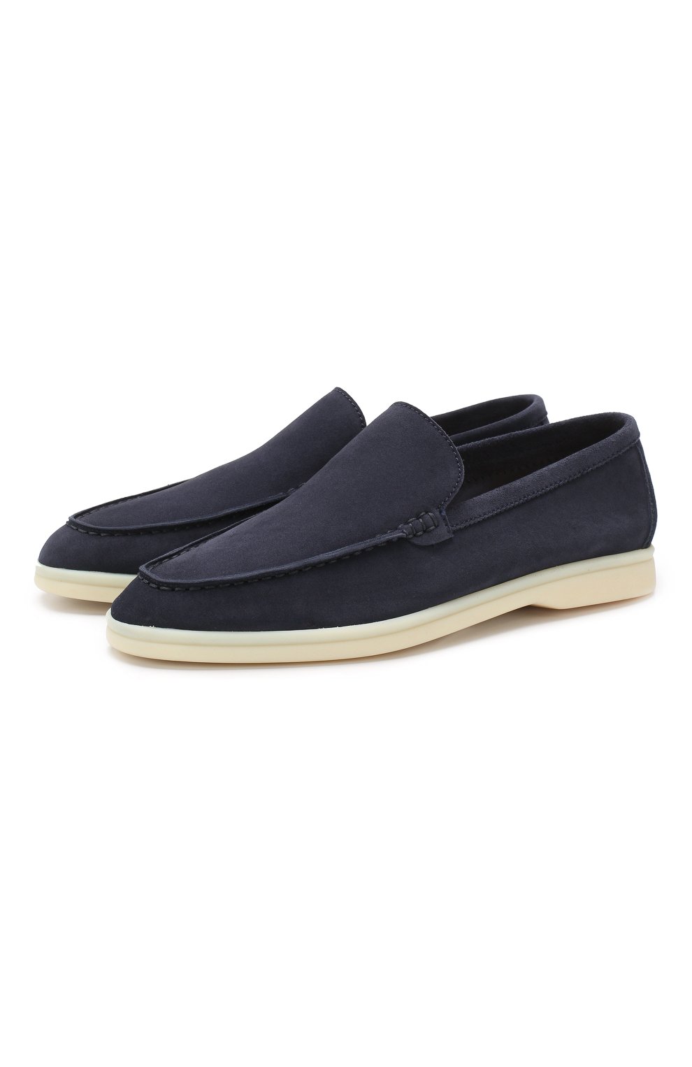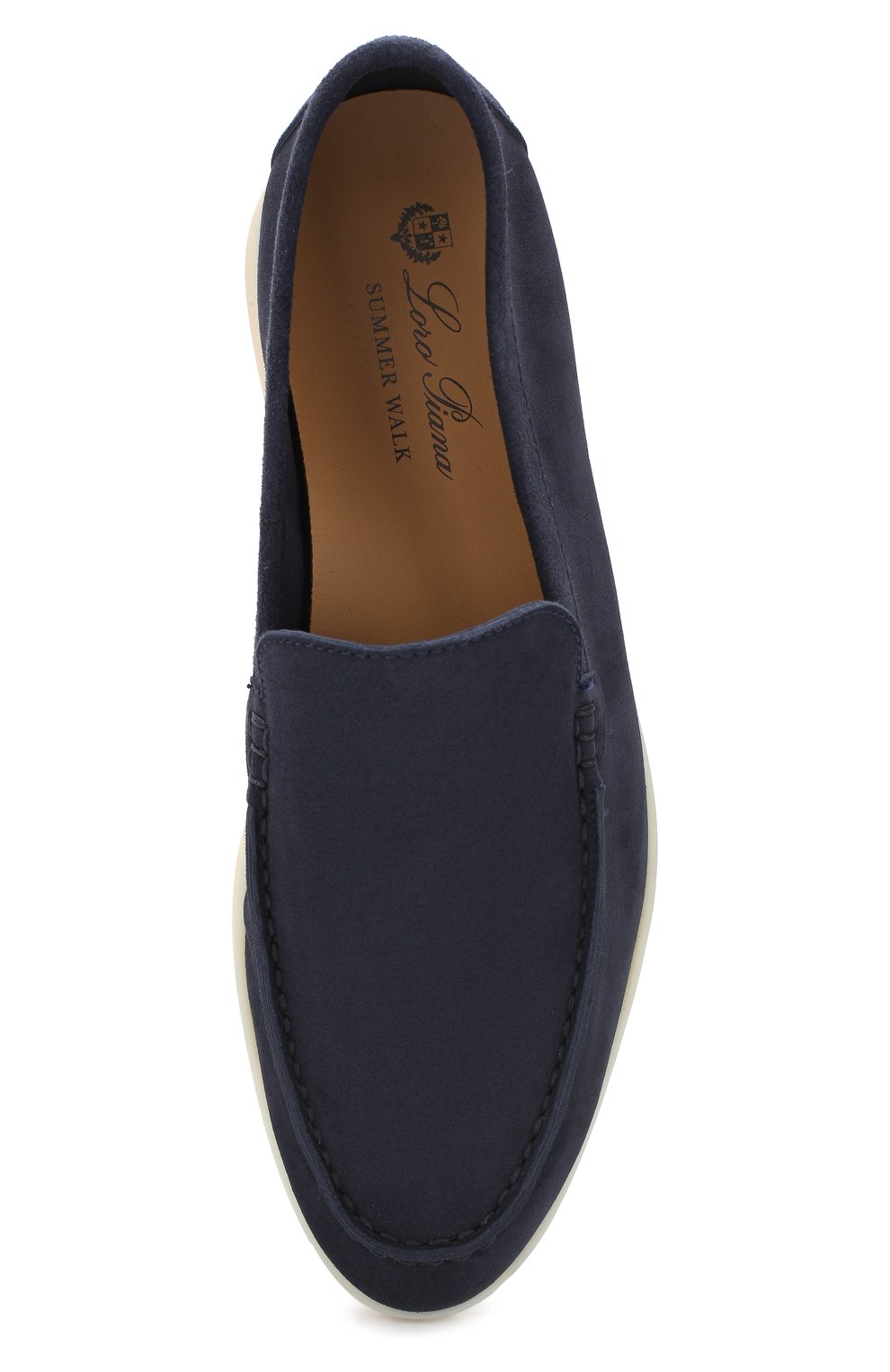Благодаря нейтральному темно-синему цвету и лаконичному силуэту венецианские лоферы Summer Walk впишутся как к офисный, так и в повседневный образ. Мастера марки, основанной Пьетро Лоро Пьяна, изготовили модель из мягкой фактурной замши, пропитанной водоотталкивающим составом, вручную соединив союзку с берцами объемным швом. Изделие дополнено прочной каучуковой подошвой.