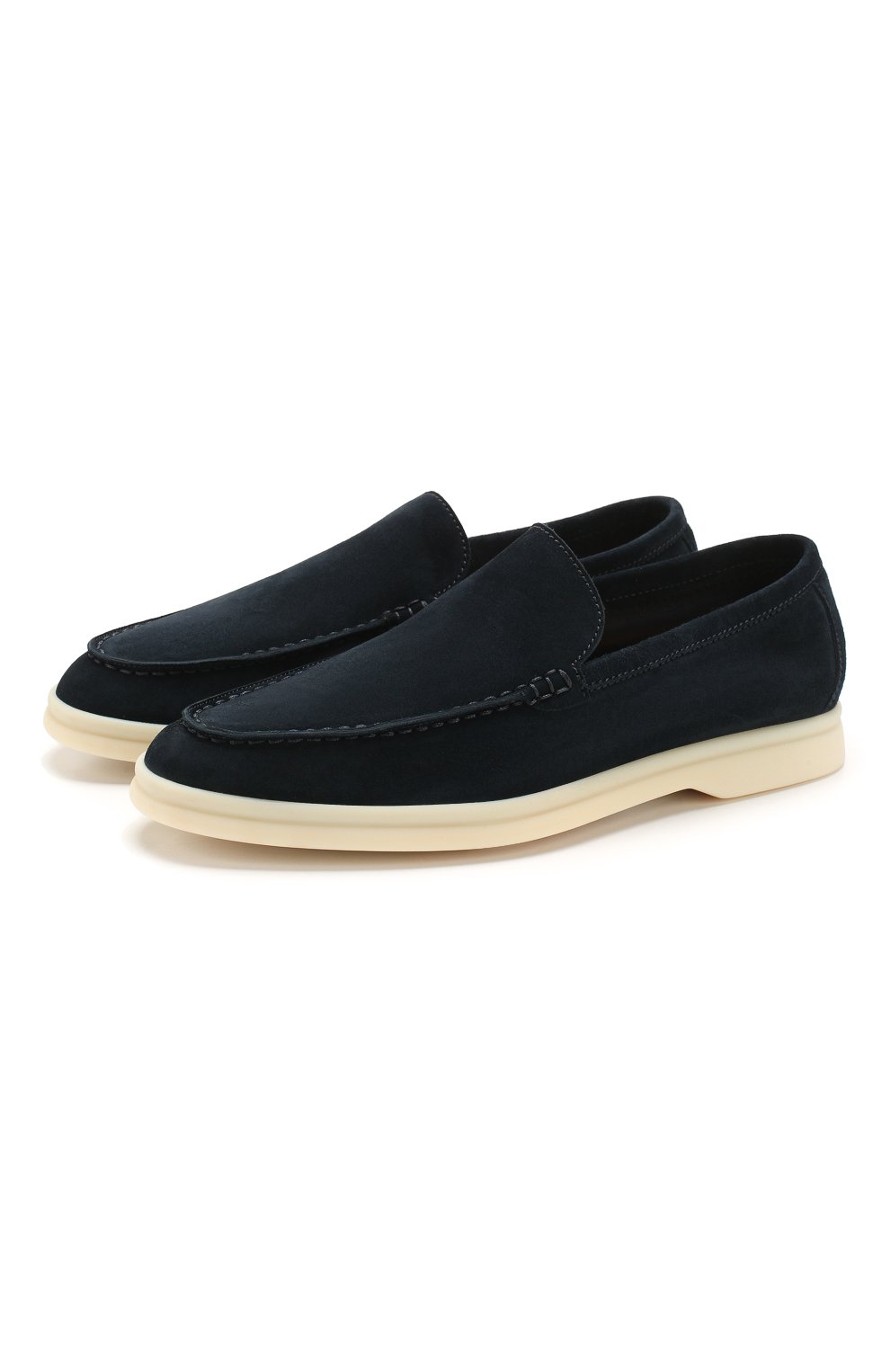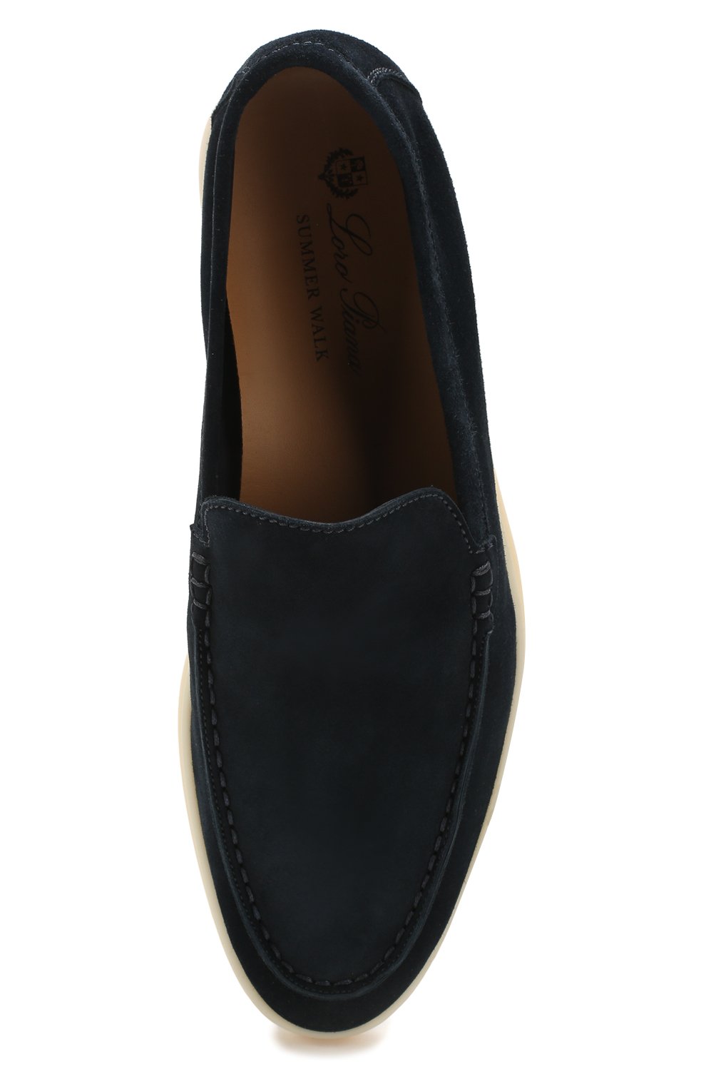 Темно-синие лоферы Summer Walk, очищенные от декора, органично впишутся в базовый гардероб. Для пошива обуви на белой каучуковой подошве мастера бренда, основанного Пьетро Лоро Пьяна, использовали бархатистую замшу. Этот приятный на ощупь материал слегка тянется, поэтому модель из весенне-летней коллекции 2020 года особенно комфортно облегает ногу.