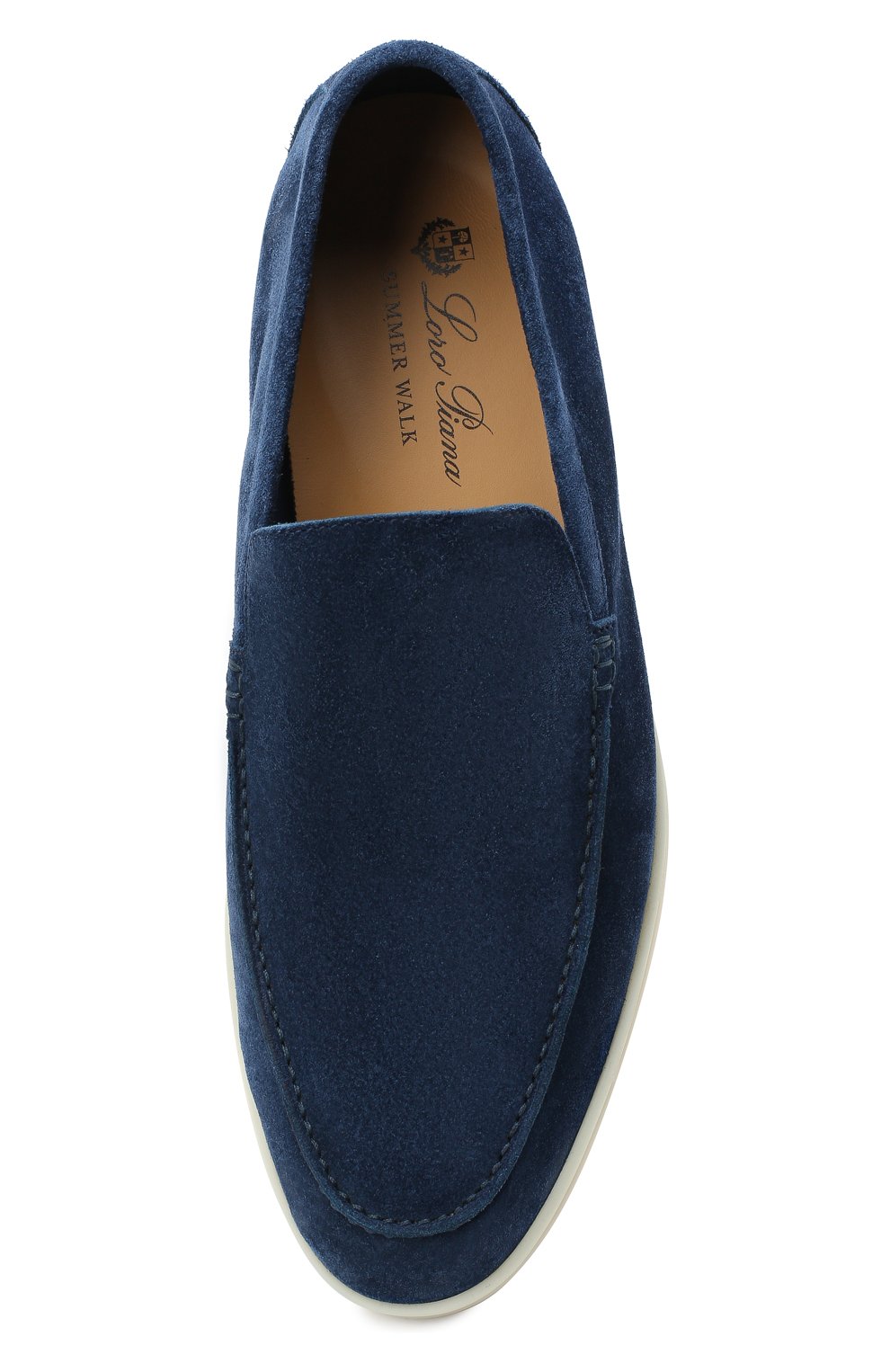 Синие лоферы Summer Walk словно созданы для долгих прогулок: все дело в материалах. Для изготовления пары из осенне-зимней коллекции 2020 года мастера марки, основанной Пьетро Лоро Пьяна, использовали мягкую тонкую замшу, обработанную для защиты от пятен и влаги. Обувь из такой кожи адаптируется к форме стопы, а за счет гибкой латексной подошвы меньше скользит на гладких покрытиях.