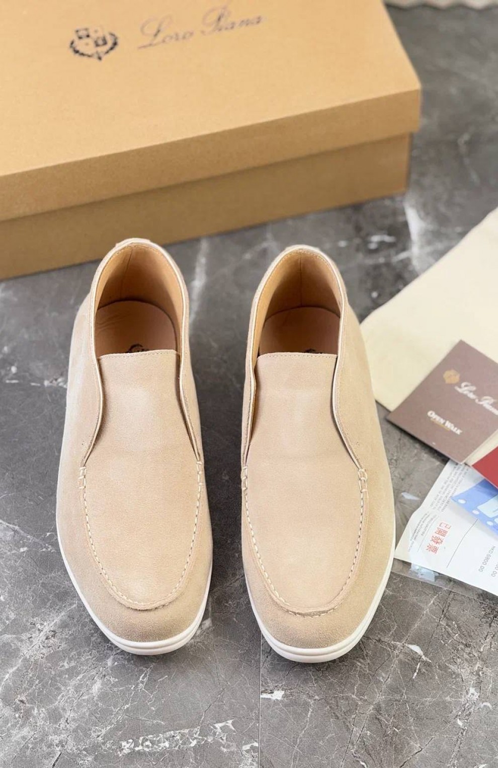 Замшевые лоферы с меховой стелькой Loro Piana Open Walk - Beige