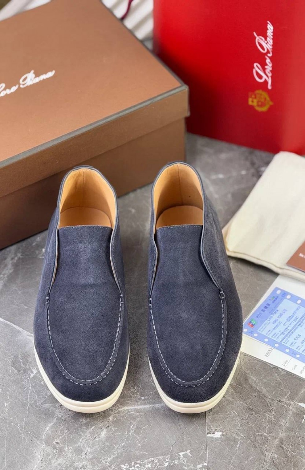 Замшевые лоферы с меховой стелькой Loro Piana Open Walk - Navy