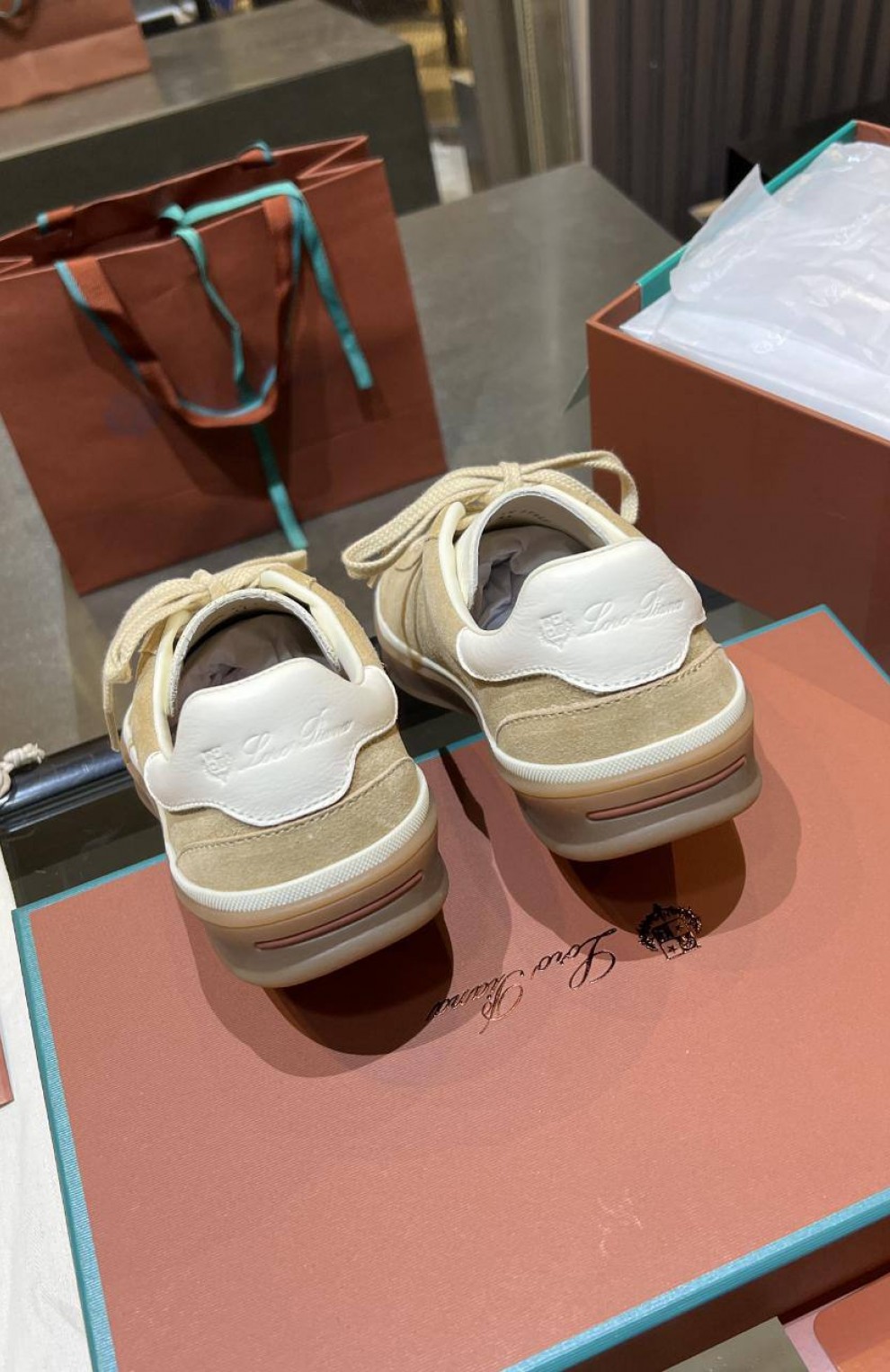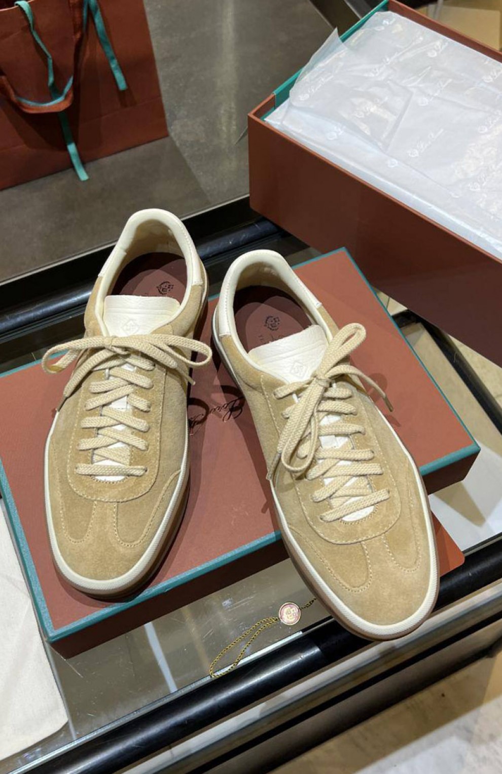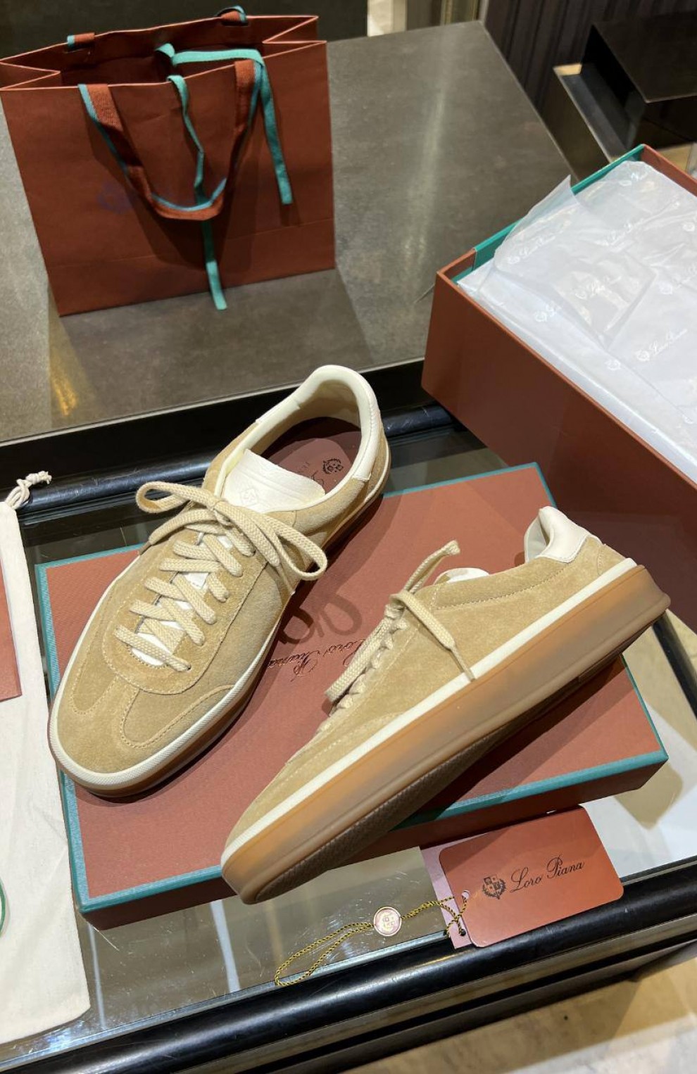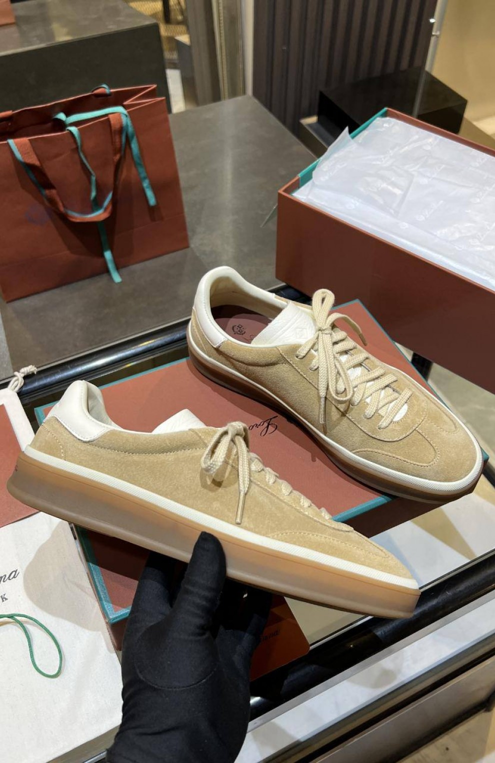 Женские замшевые кроссовки Loro Piana Premium - Beige