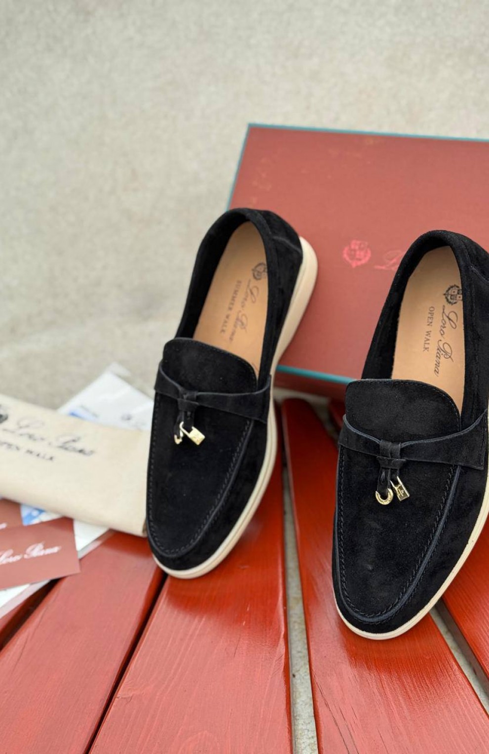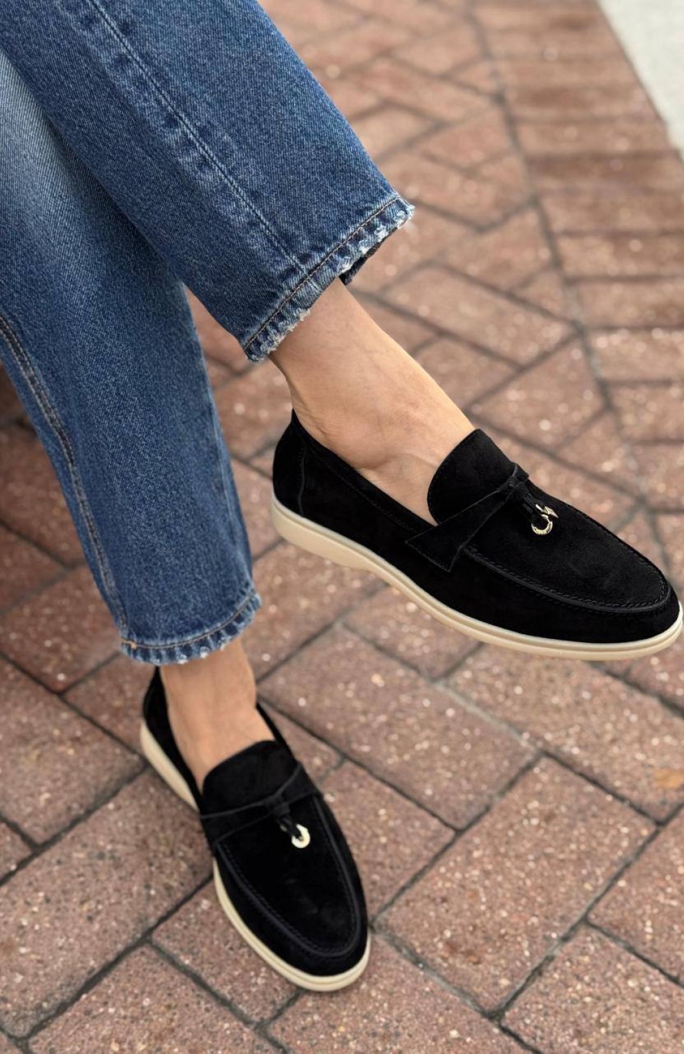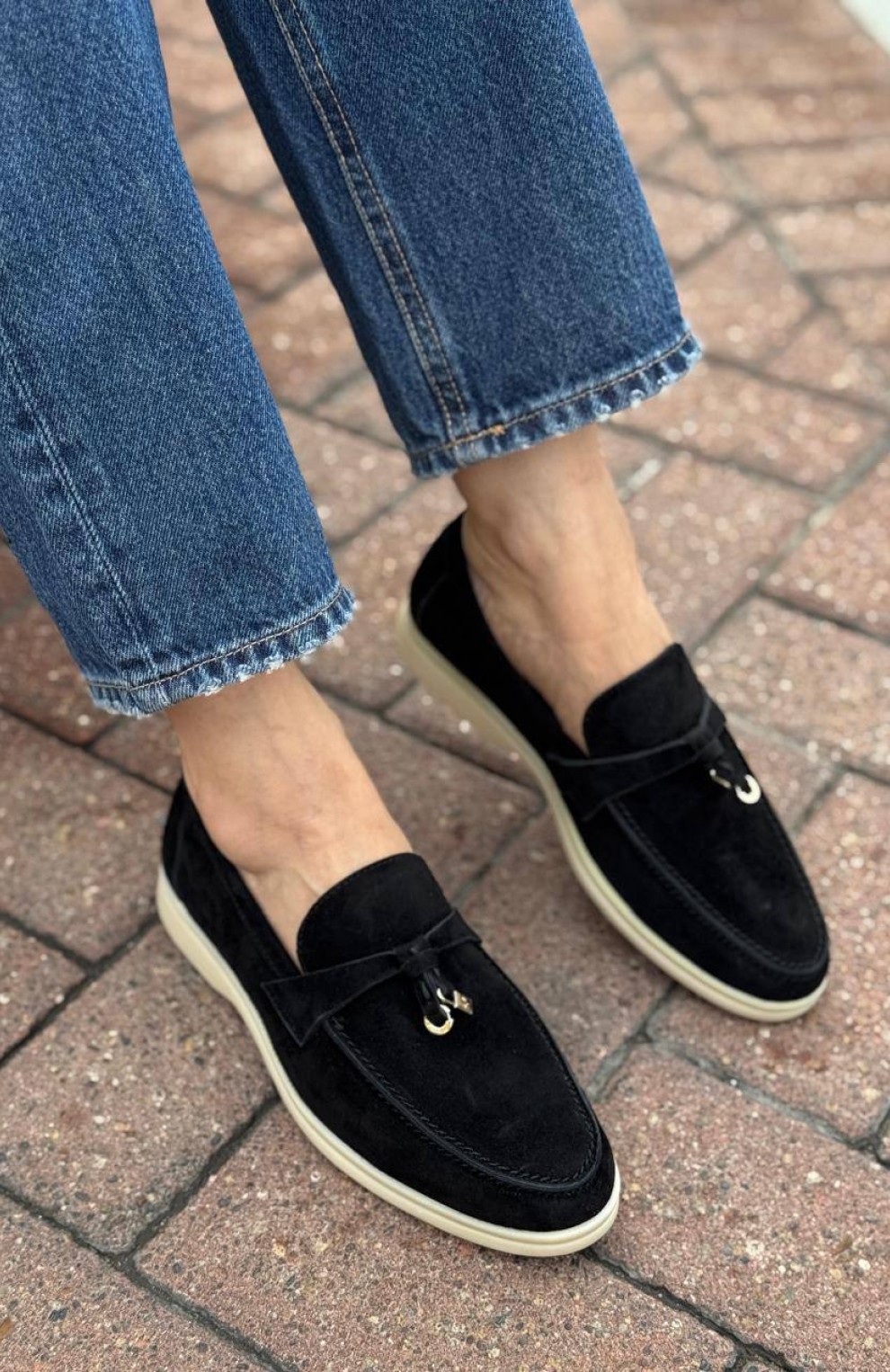 Женские замшевые лоферы Loro Piana Open Walk - Black