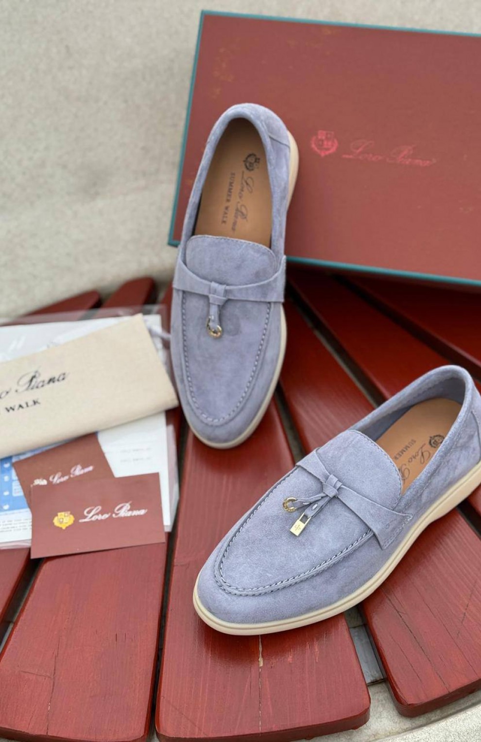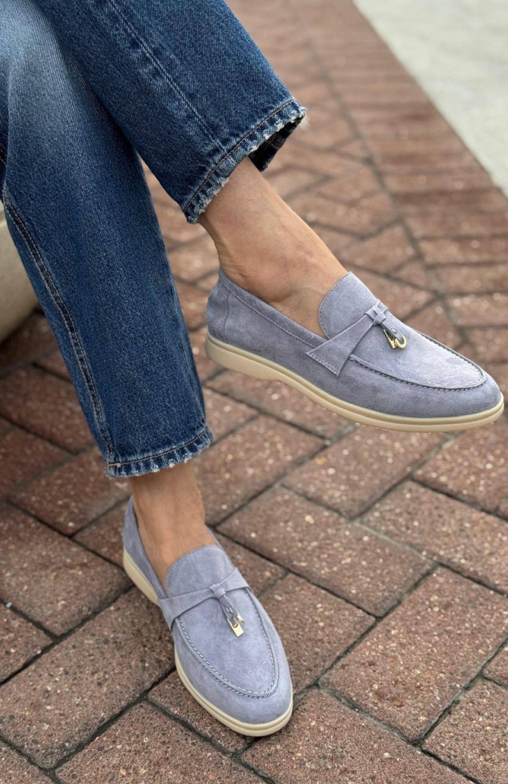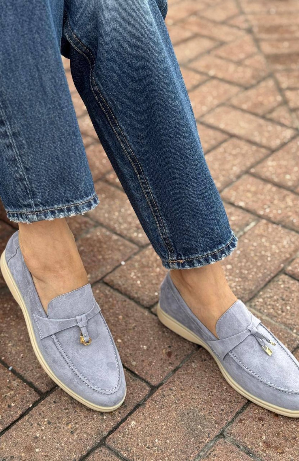 Женские замшевые лоферы Loro Piana Open Walk - Blue