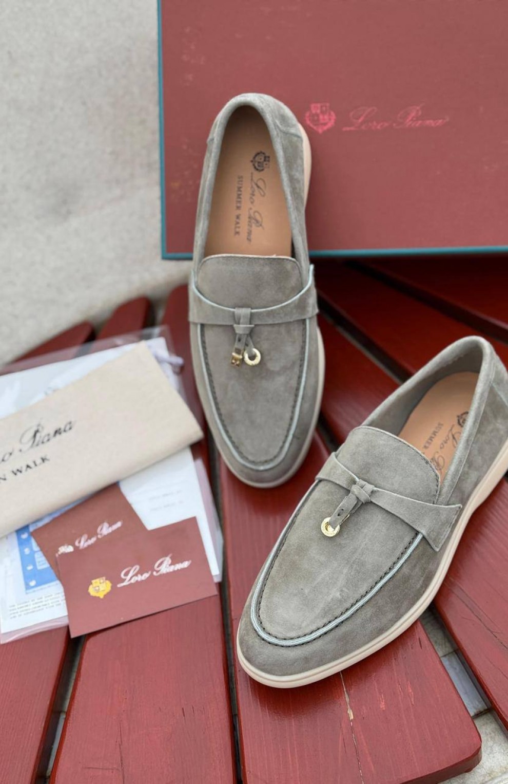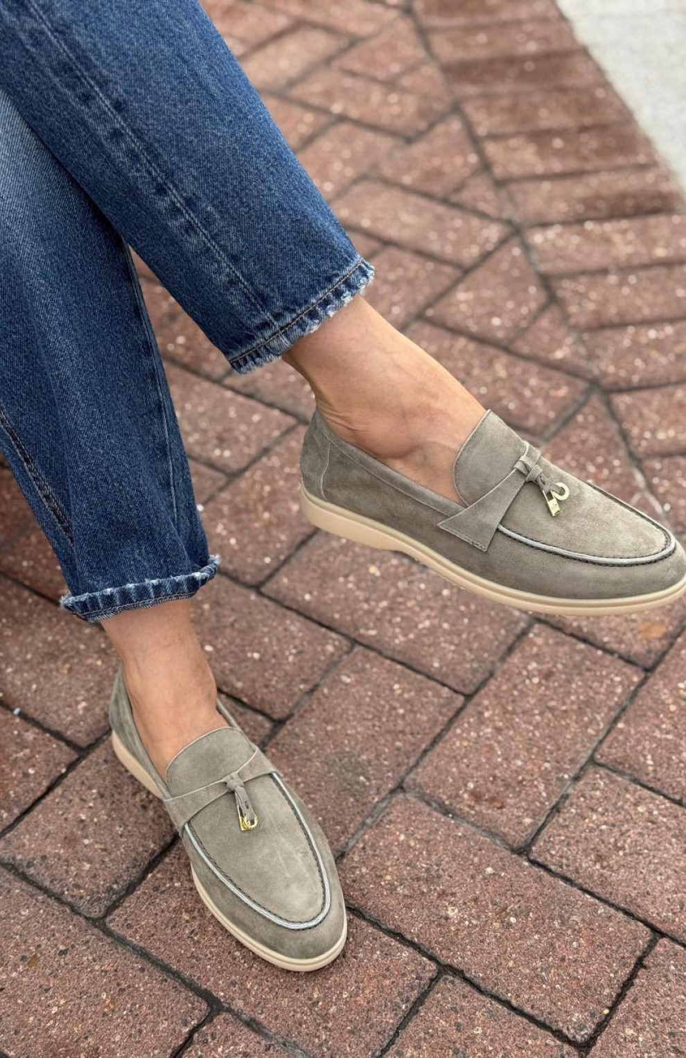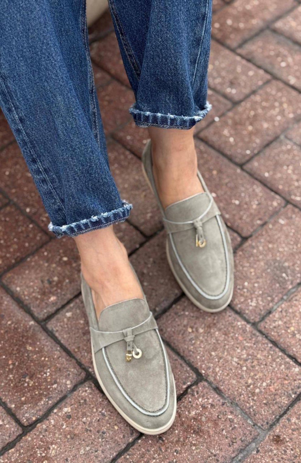 Женские замшевые лоферы Loro Piana Open Walk - Grey