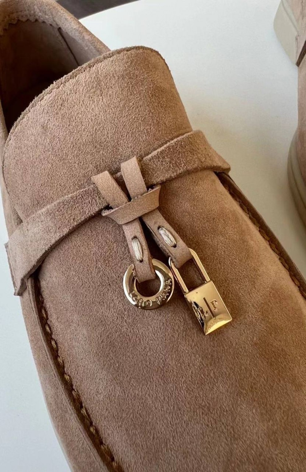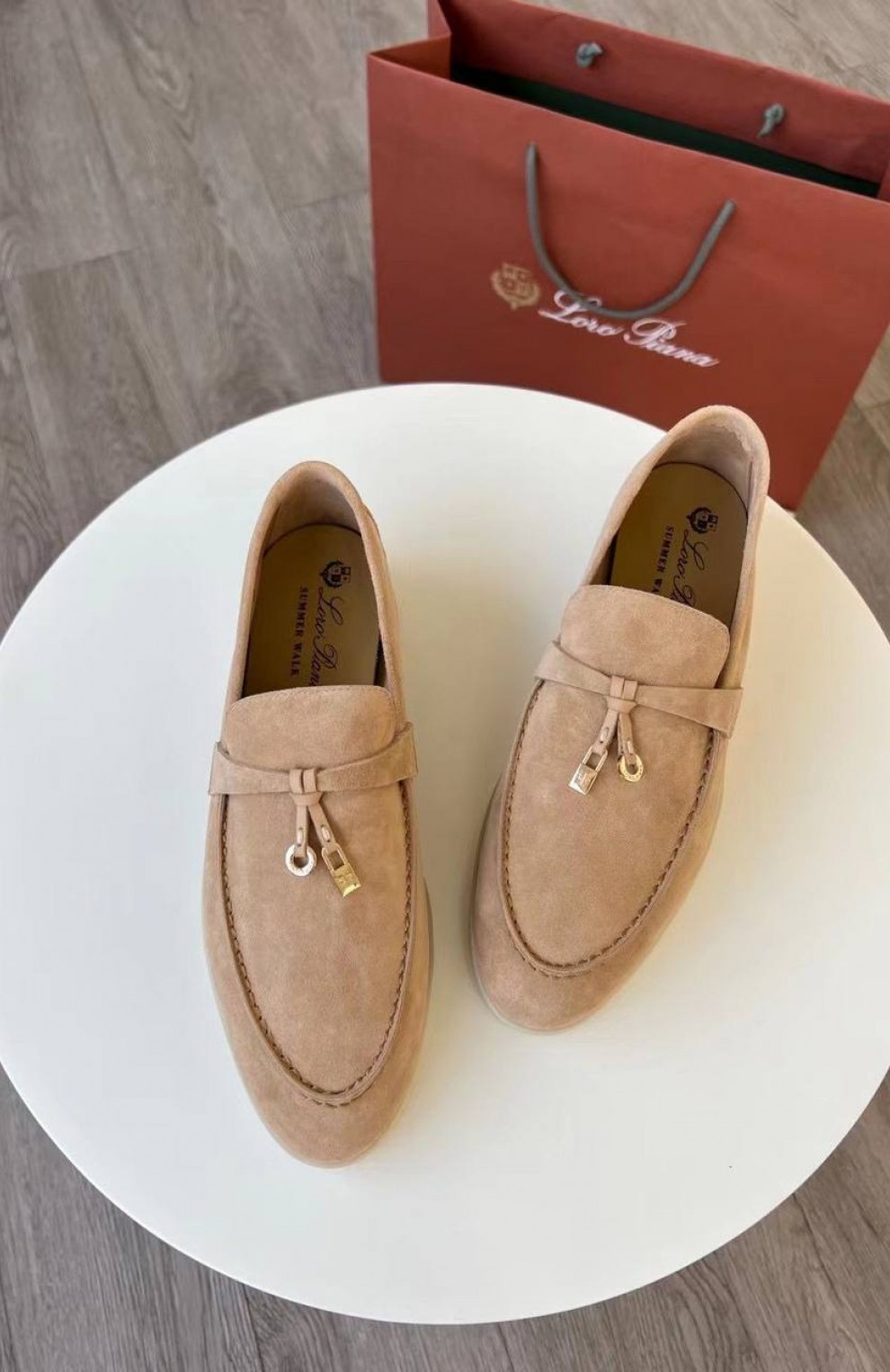 Женские замшевые лоферы Loro Piana Open Walk Premium - Beige