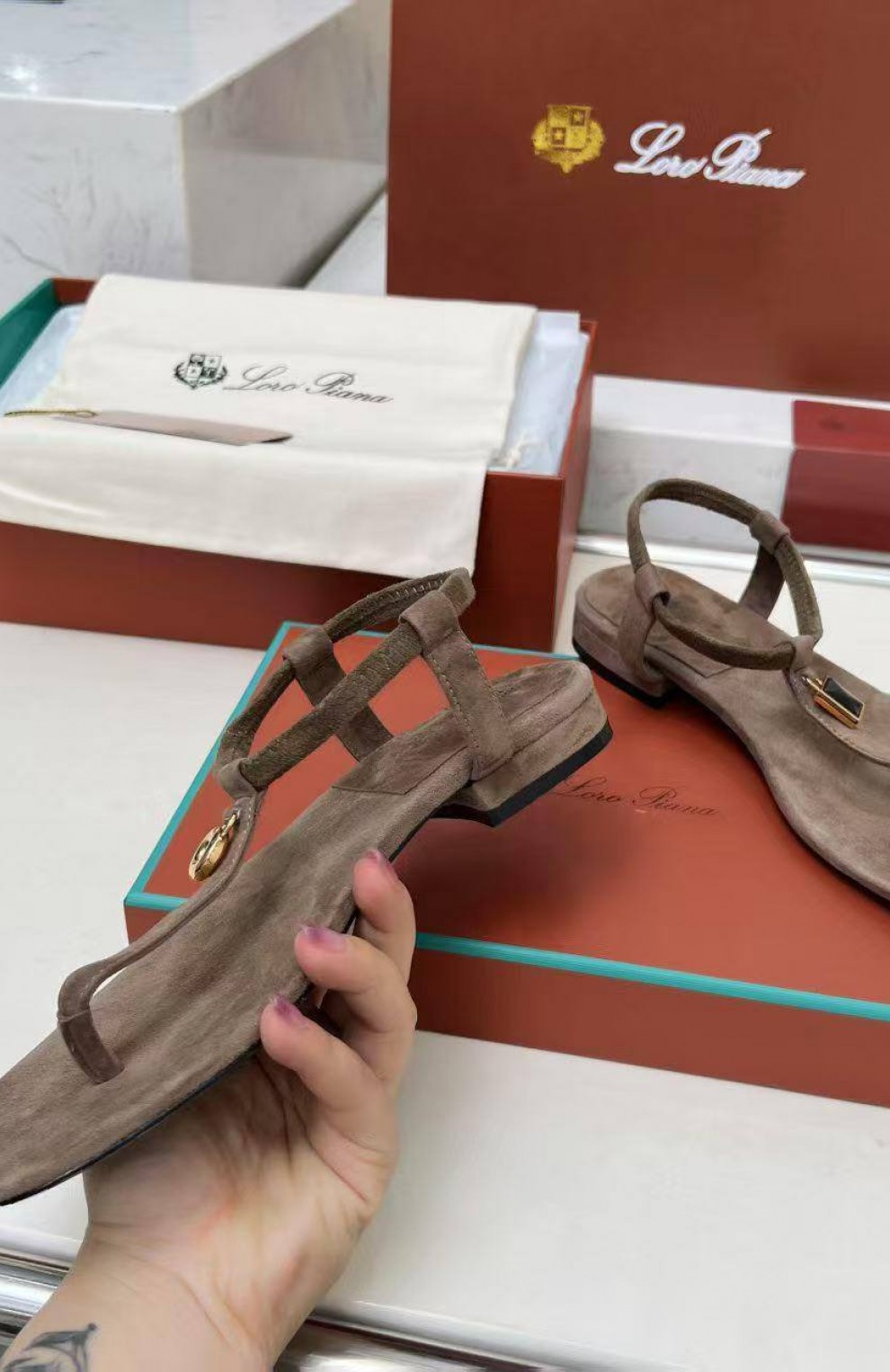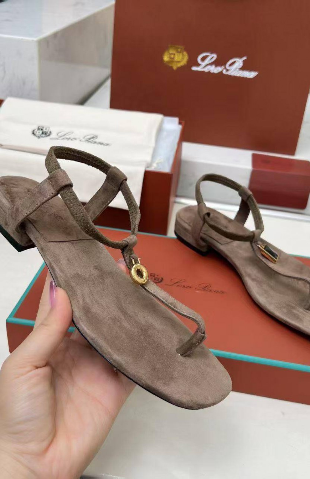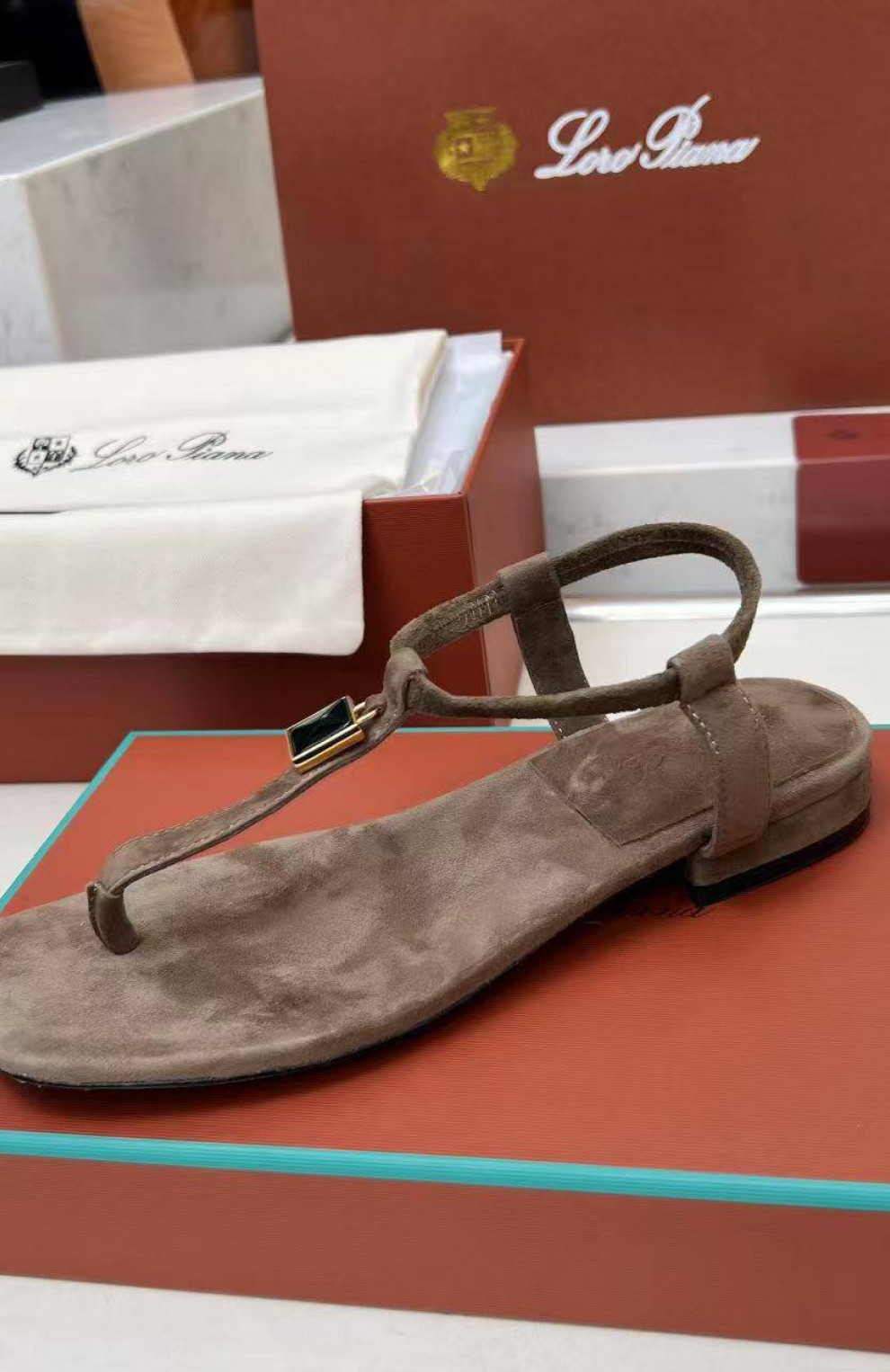 Женские замшевые сандалии Loro Piana Premium - Brown