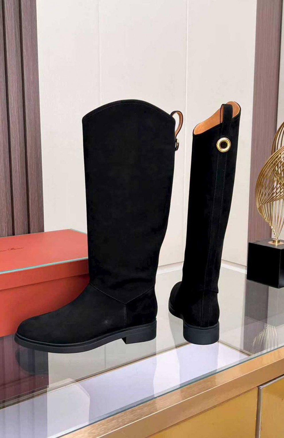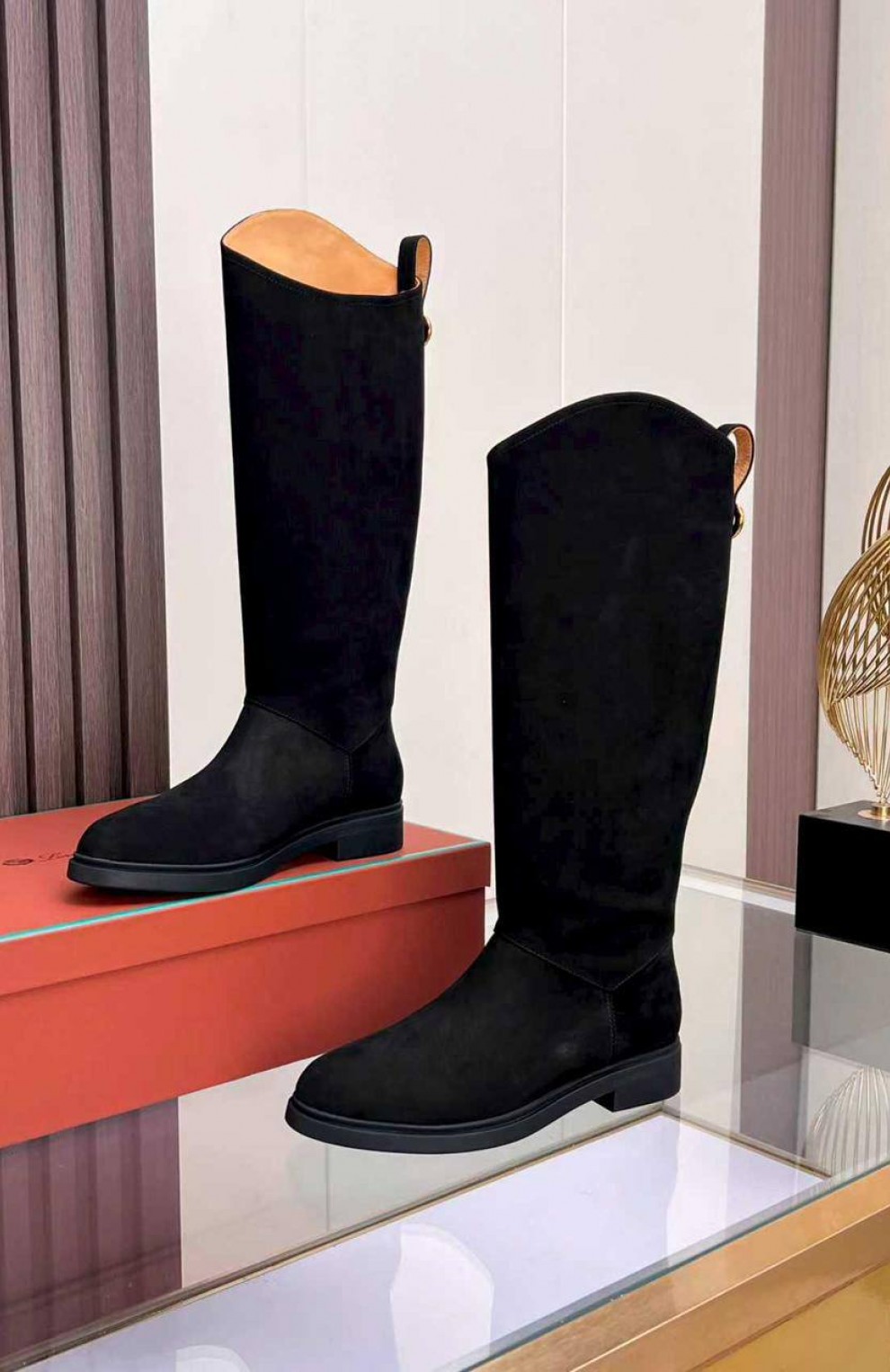 Женские замшевые сапоги Loro Piana premium - Black