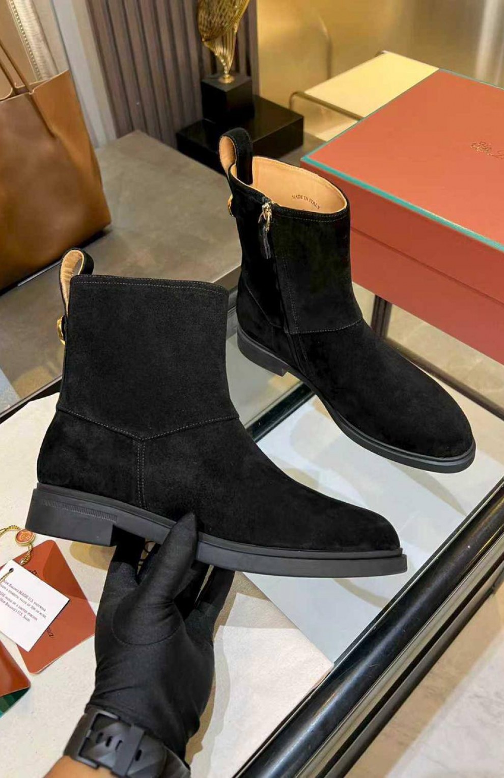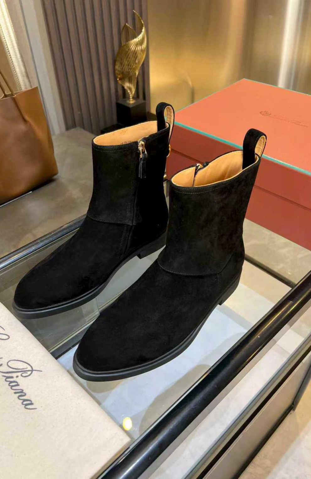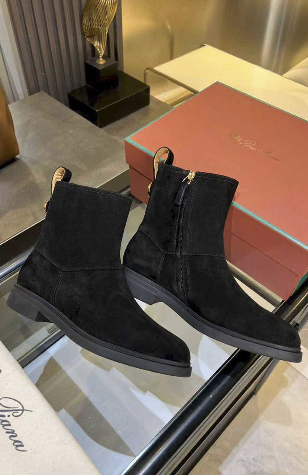 Женские замшевые сапоги Loro Piana premium - Black