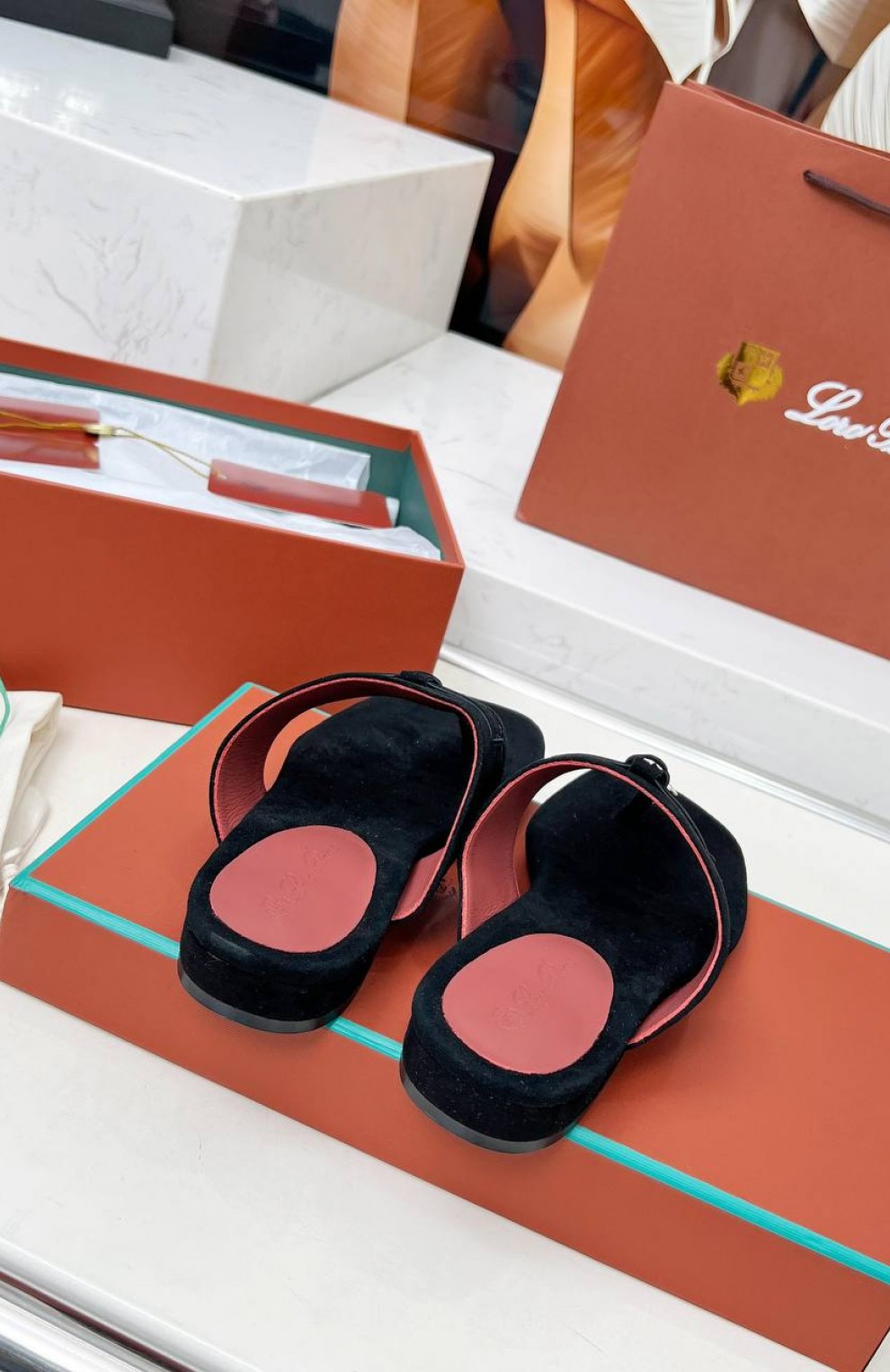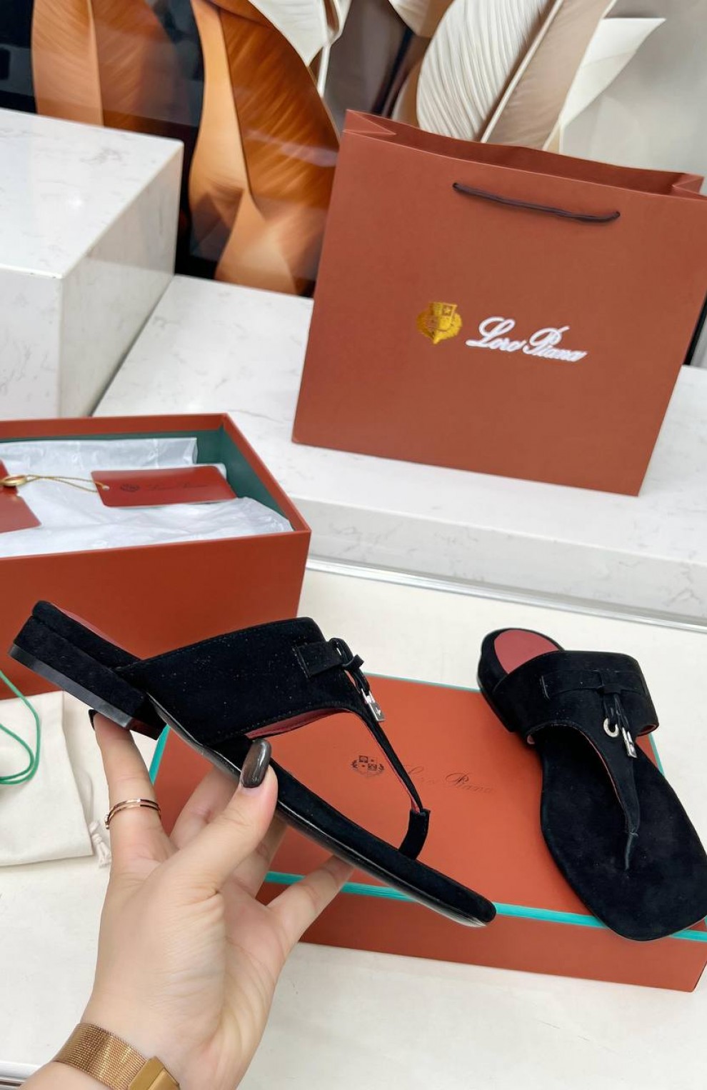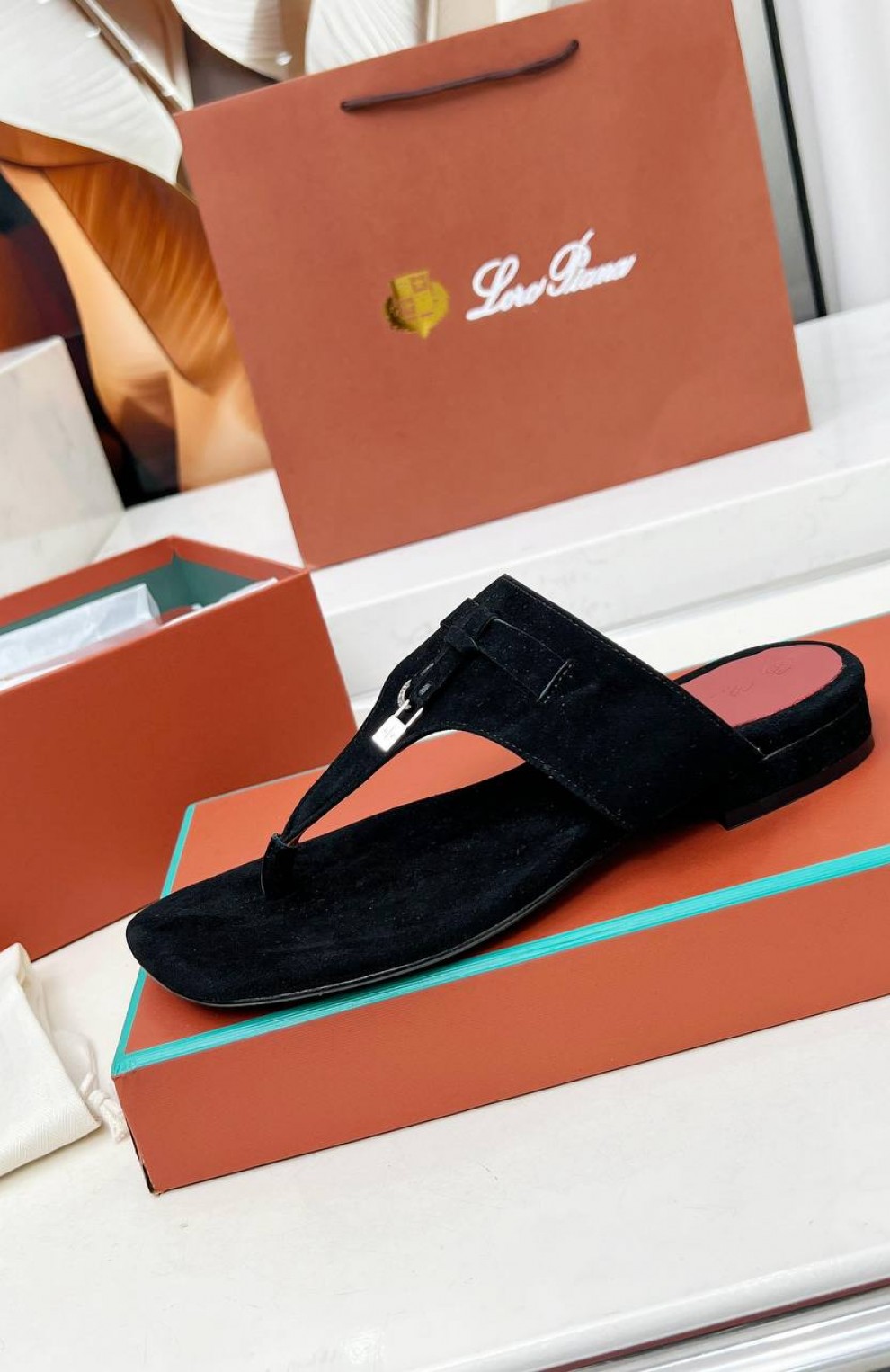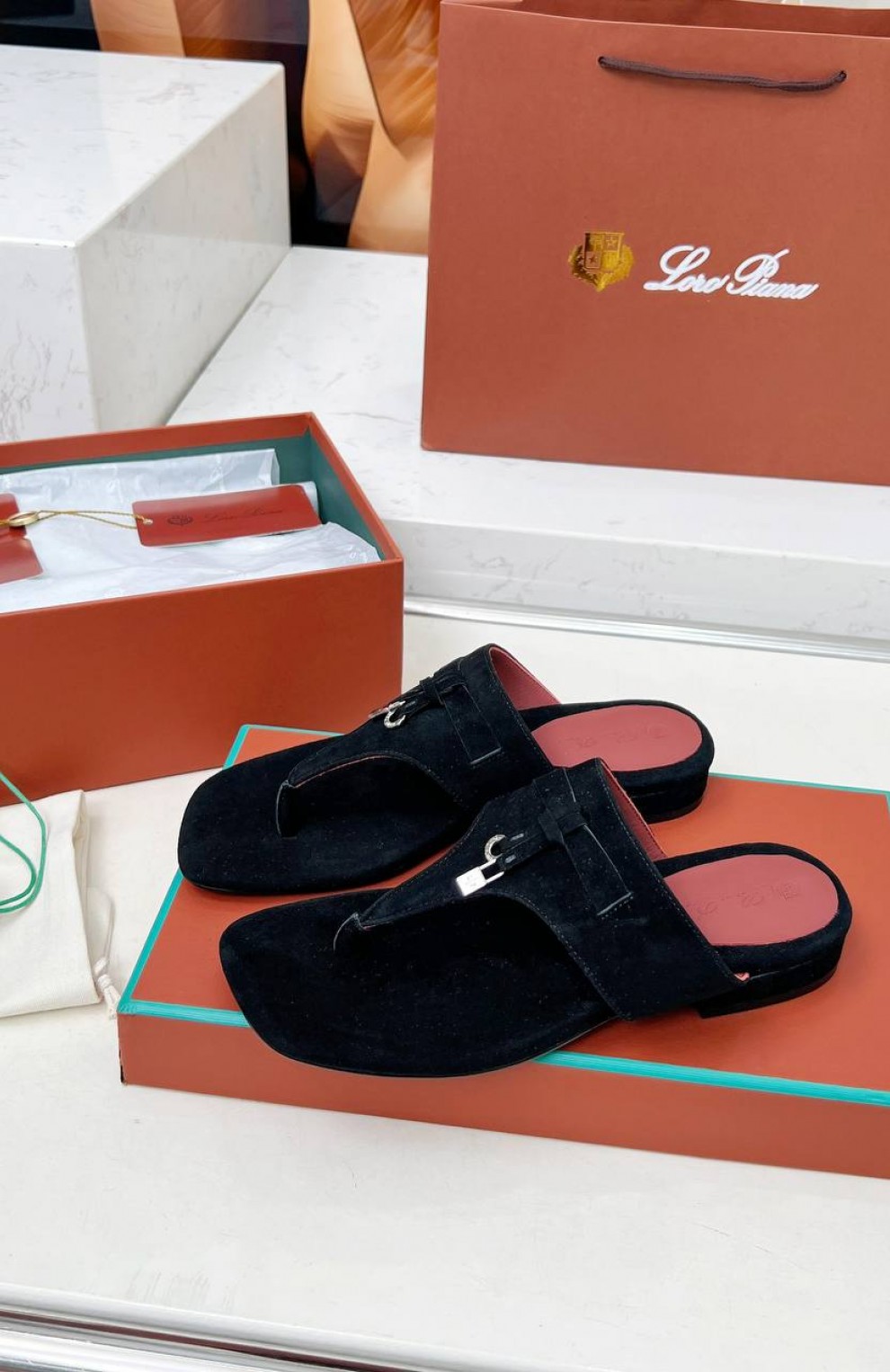 Женские замшевые шлёпанцы Loro Piana Premium - Black