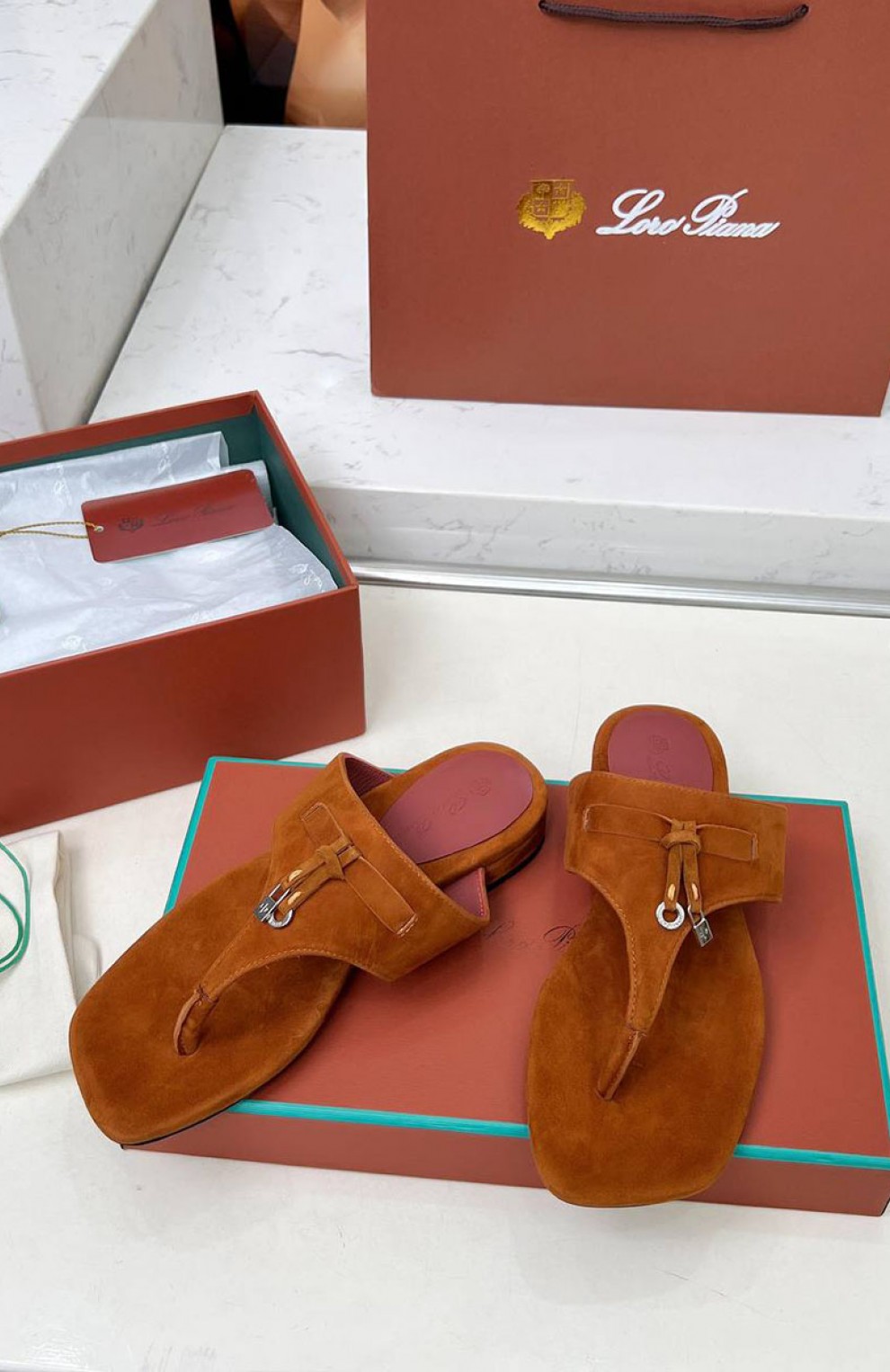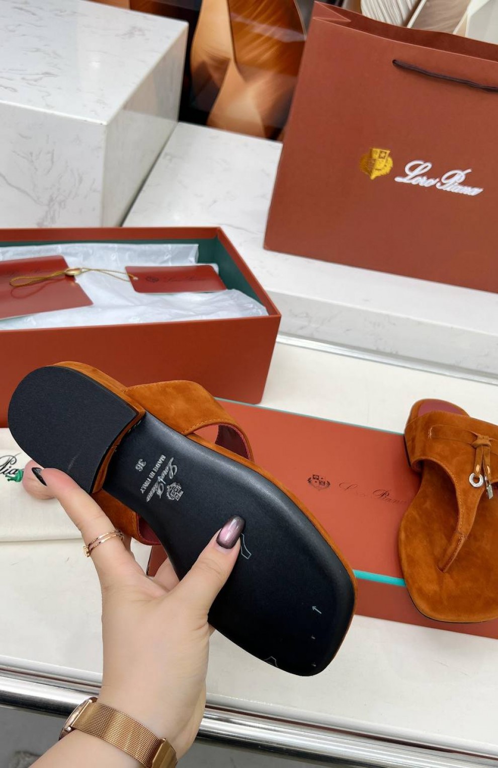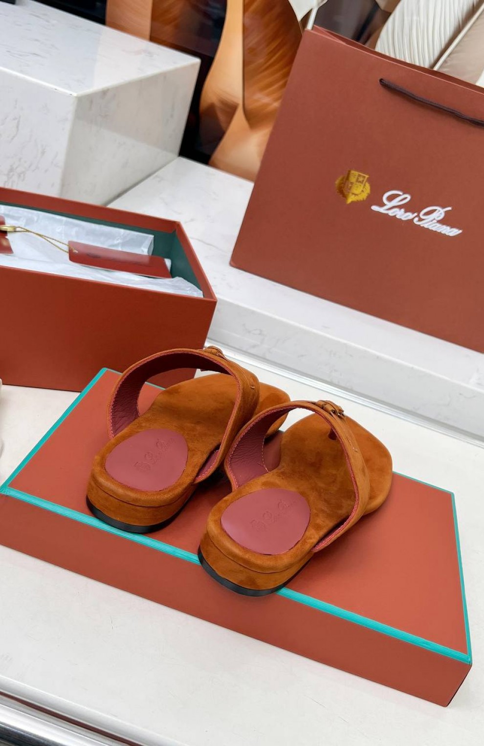 Женские замшевые шлёпанцы Loro Piana Premium - Brown