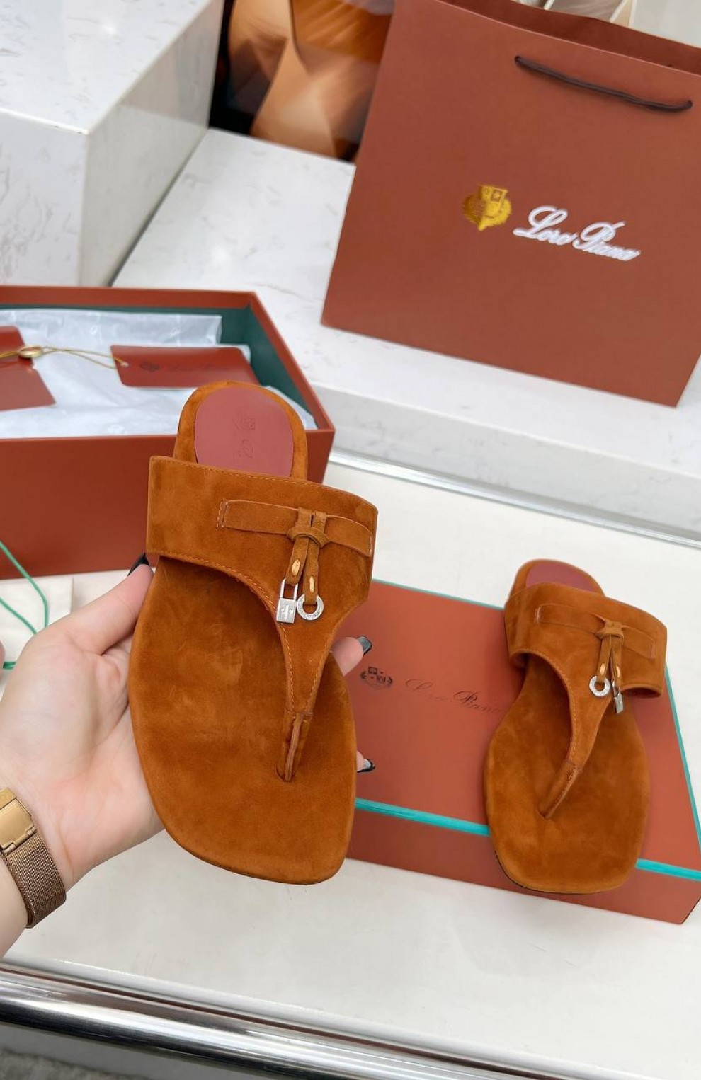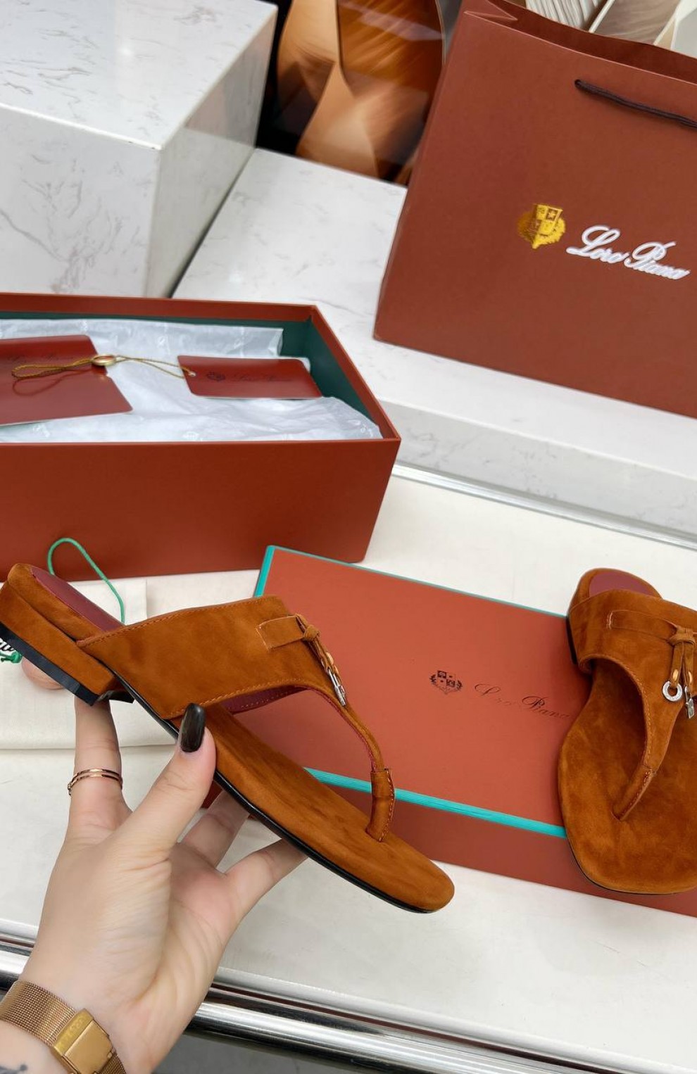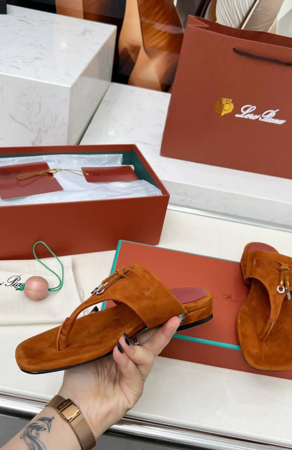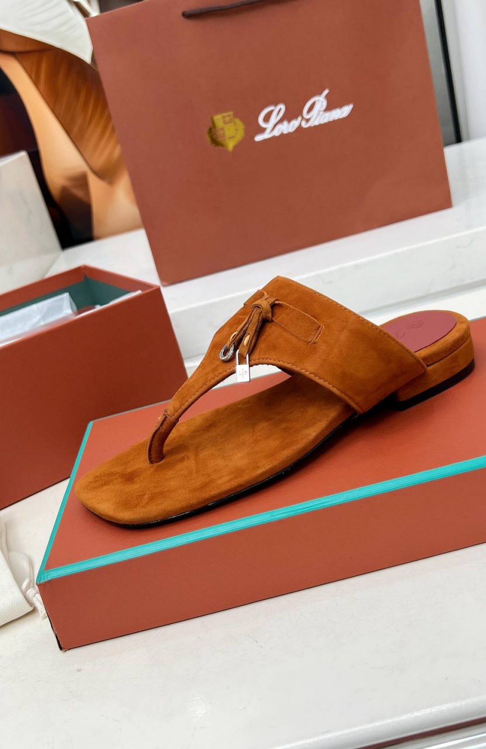 Женские замшевые шлёпанцы Loro Piana Premium - Brown