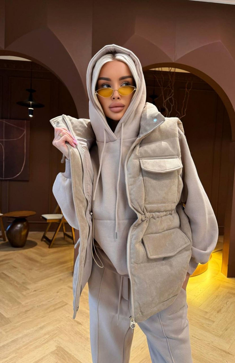 В комплекте: жилет, худи, спортивные штаны