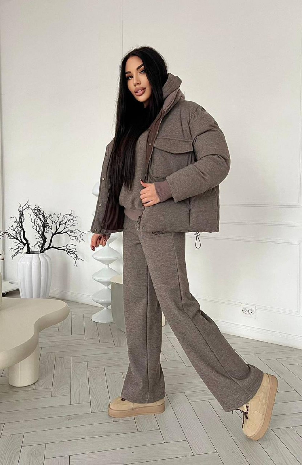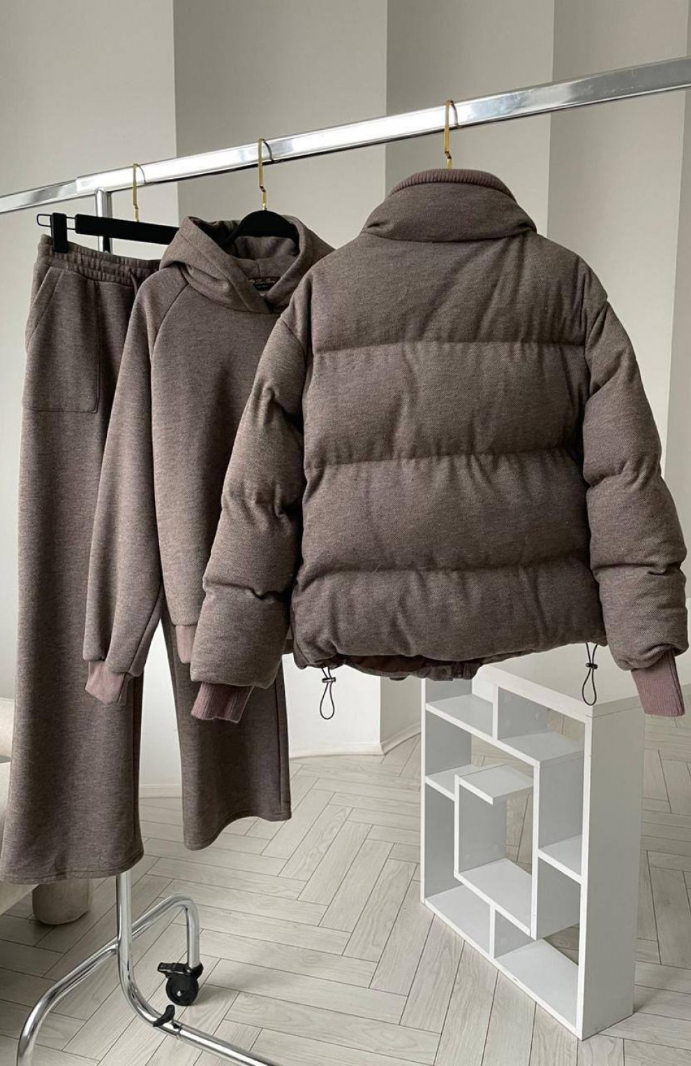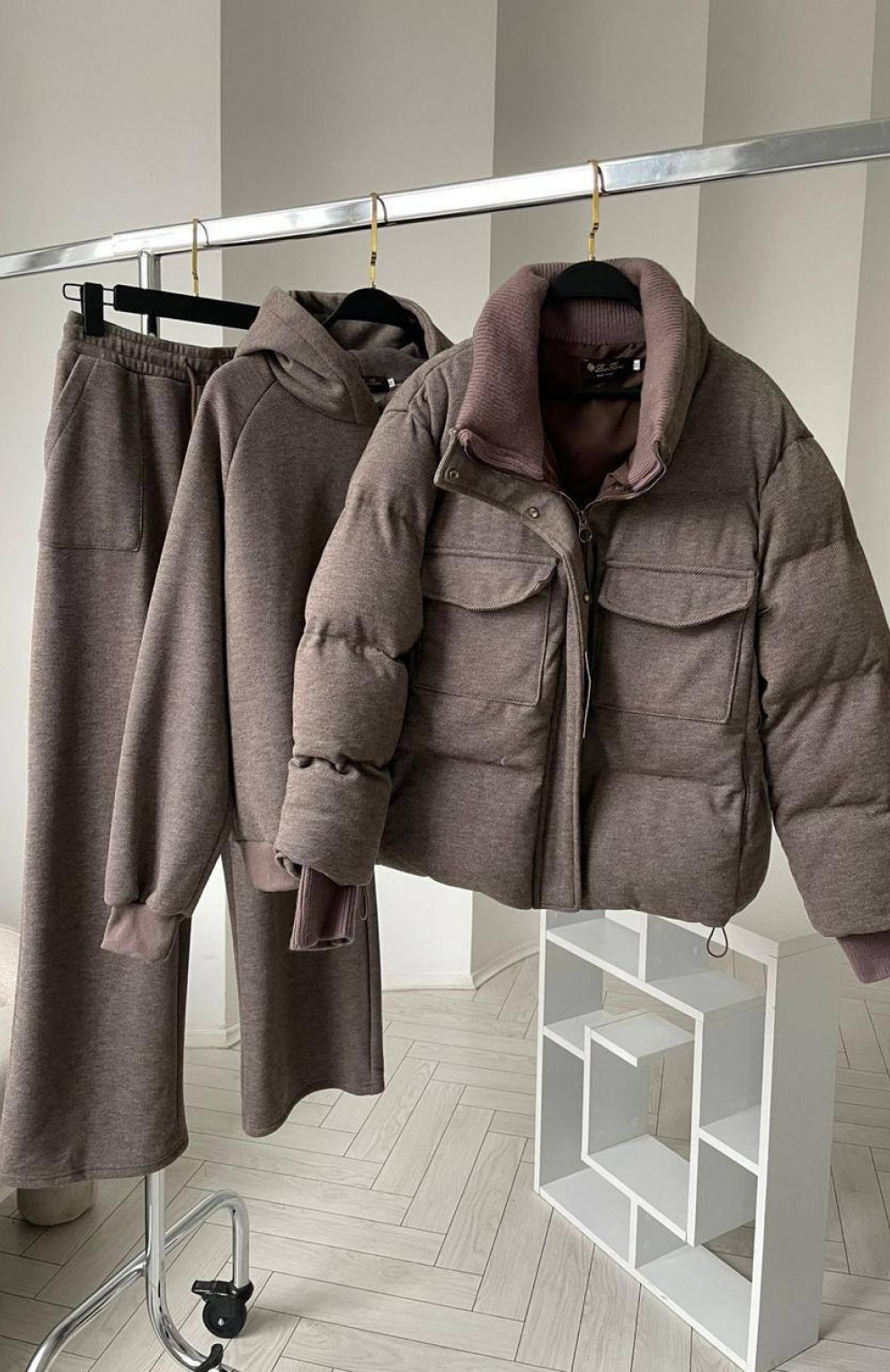 Женский костюм тройка на флисе Loro Piana premium - Brown