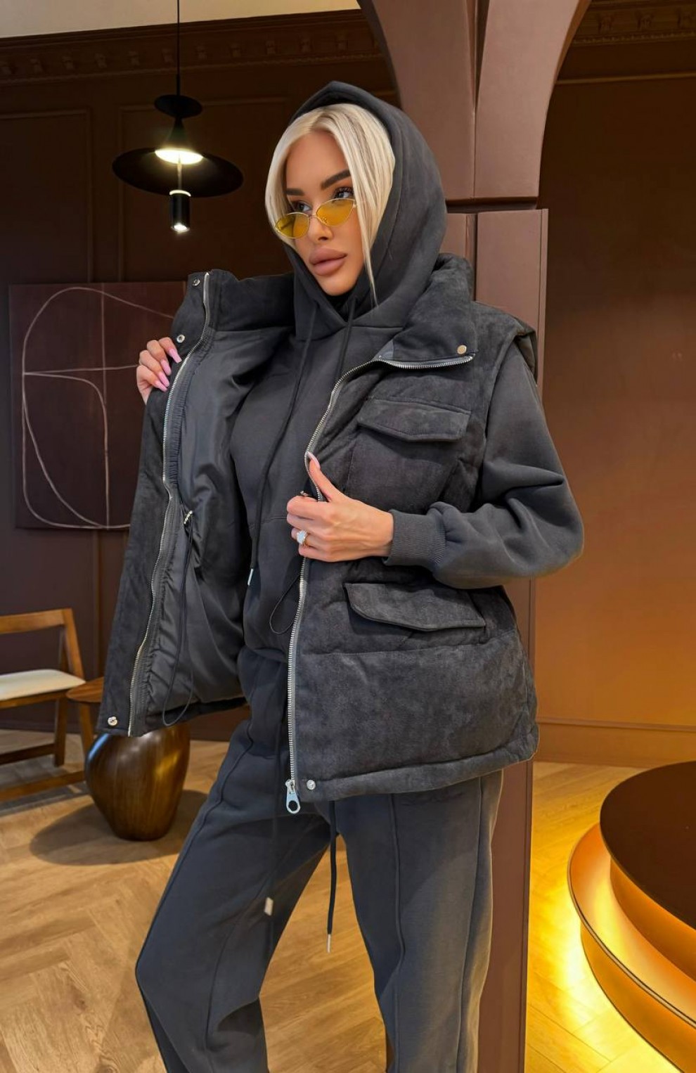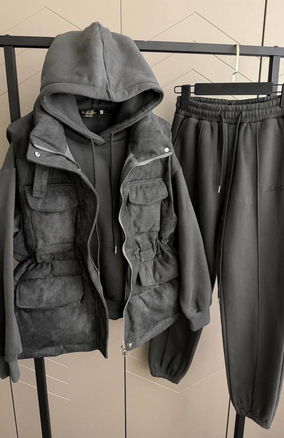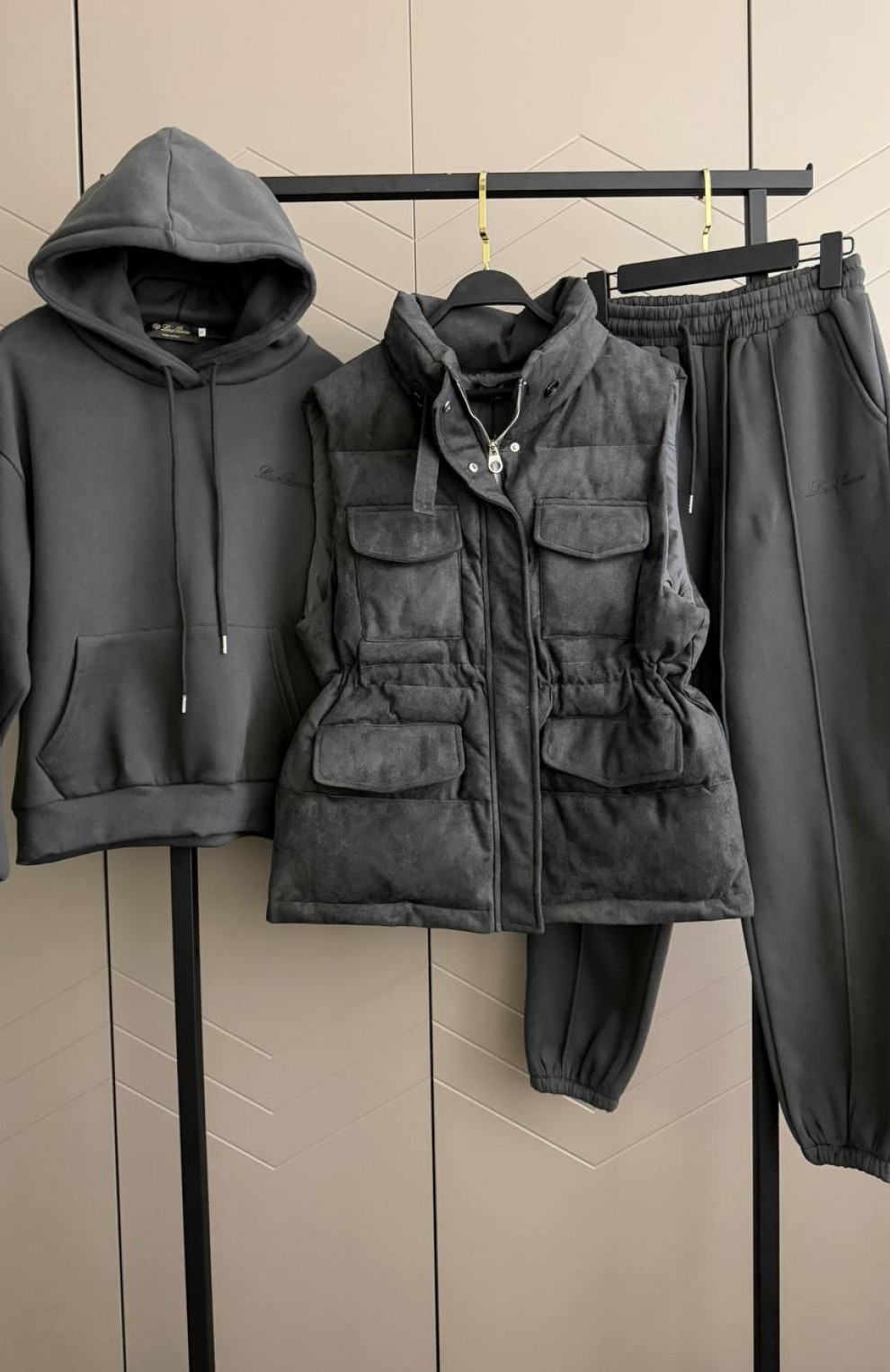 Женский костюм тройка на флисе Loro Piana premium - Grey